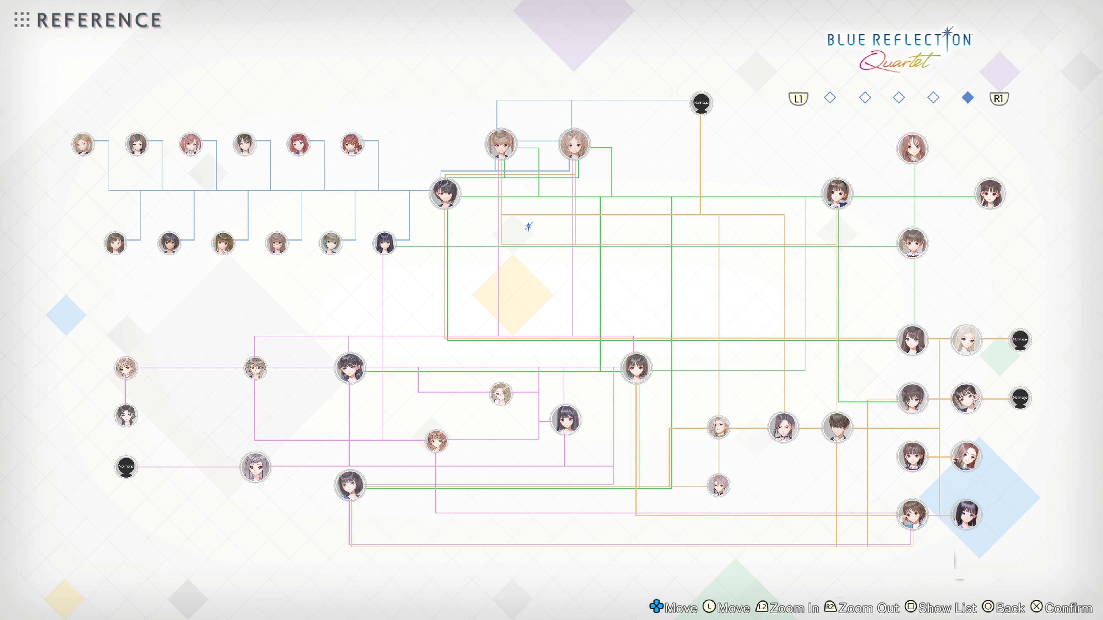 Blue Reflection Quartet führt eine „Referenz“-Datenbank ein, mit der Fans ihr Verständnis der Blue Reflection-Welt vertiefen können, sowie eine Auswahl an Illustrationen von Charakterdesignerin und General Supervisorin Mel Kishida mit der „Galerie“-Funktion.