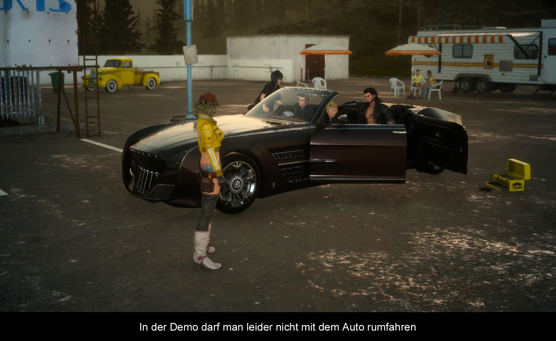 Zur Geschichte von „Final Fantasy XV“ gibt es in der Demo relativ wenig. Wir wissen nur, dass sich der Prinz Noctis mit seinen drei Freunden aus irgendeinem Grund auf den Weg gemacht hat. Nun gibt es aber ein Problem mit dem Fahrzeug und für die Reparatur benötigt man 25.000 Gil und hier steigt die Demo ein. Ihr seid also irgendwo im Nirgendwo und müsst das Geld auftreiben und glücklicherweise treibt ein riesiger Behemoth sein Unwesen und das Erledigen von ihm sichert euch 25.000 Gil. Also macht ihr euch auf die Suche nach dem Monster im Wald, um das Geld zu bekommen.