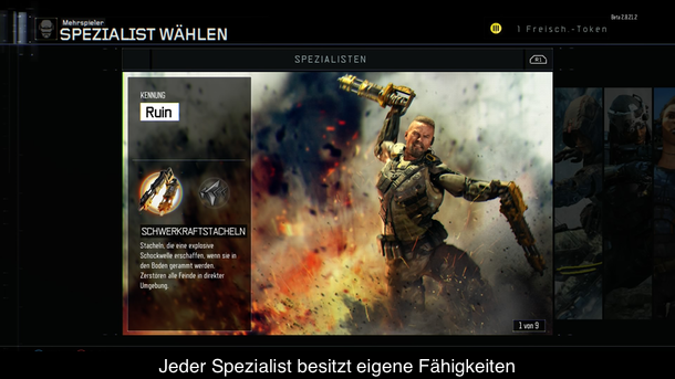 Eine weitere Neuigkeit betrifft das Aufleveln von Waffen und Freischalten von neuen Spezialfähigkeiten. Denn im Spiel gibt es mehrere Spezialisten, die alle zwei Spezialfähigkeiten haben. Je nachdem für wen man sich entscheidet, kann man zum Beispiel im laufenden Spiel einen Bogen auspacken, der explodierende Pfeile verschießt oder seine Rüstung kurzzeitig verbessern. Jede Fähigkeit muss man aber mit einem Freischalte-Token aktivieren, die man für ein Level Up erhält. Diese Tokens muss man aber auch einsetzen, um eine neue Waffe oder ein Visier freizuschalten. Das relativ gefahrlose Ausprobieren von neuen Settings ist somit nicht mehr möglich, da eingesetzte Tokens nicht mehr zurückgeholt werden können. Immerhin scheinen zumindest die Spezialfähigkeiten der einzelnen Spezialisten keine spielentscheidenden Fähigkeiten zu sein. Einerseits kann man sie nur recht selten einsetzen und andererseits sind sie nur sehr begrenzt verfügbar, nach der Aktivierung.