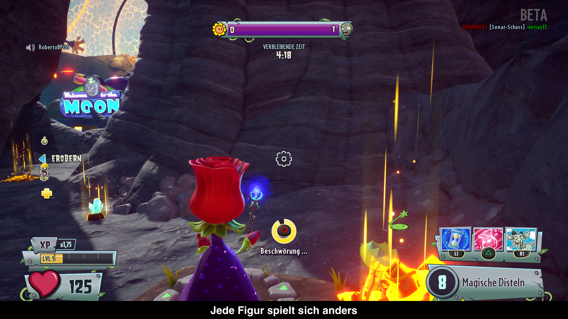 Damit auch die alten Klassen mithalten können, haben die einen ordentlichen Boost erhalten. Es wurden die Uplinkzeiten für die Fähigkeiten verkürzt, wie auch der verursachte Schaden etwas angeglichen. Bei den Zombies gibt es die größten Änderungen. Der Wissenschaftler ist nun der Sonnenblume sehr viel ähnlicher und hat einen Heilstrahl statt der Heilstation. Der Ingenieur hingegen musste seine Drohne Käpt’n Totbart überlassen und bekommt dafür ein Geschütz. Wie gewohnt, gibt es für jede Klasse verschiedene Varianten. Einmal mit Feuerschaden, dann mit Eis oder anderen speziellen Eigenschaften. Somit sollte für jeden Spieler eine Figur dabei sein. Auch kosmetische Änderungen sind zahlreich vertreten. Neu hingegen sind verschiedene Eigenschaften. Jeder Charakter steigt im Level auf und schaltet für drei Slots Eigenschaften frei, wie z.B. schnellere Heilung oder mehr Zoom.