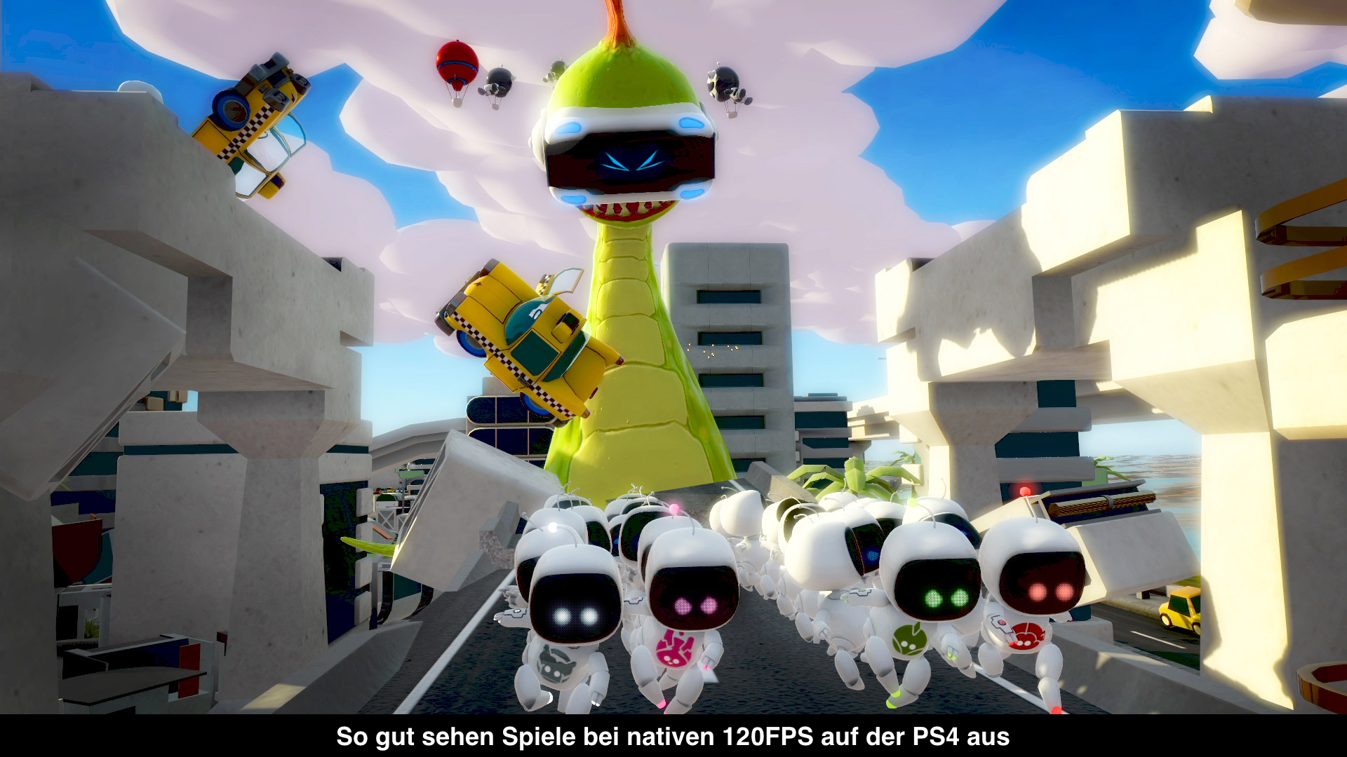 Bei PlayStation VR wird der Nachteil jedoch zum Vorteil! Die PlayStation 4 ist ein geschlossenes System mit fester Hardware. Jeder Entwickler weiß also, dass das Spiel genauso auch beim Spieler aussehen und laufen wird. Somit kann man wunderbar optimieren und muss sich nicht mit unterschiedlichen Konfigurationen auseinandersetzen. Immerhin sehen auch heute normale Spiele nicht bedeutend schlechter aus als auf dem PC. Das selbe gilt auch für VR, wo Sony zahlreiche Spiele gezeigt hat, die auf den ersten Blick aussehen, wie mit Oculus Rift oder HTC Vive gespielt. Zudem hat Sony den Vorteil der Reprojektion, der für Entwickler nahezu ohne Mehrkosten daherkommt. Hinter diesem sehr einfachen Wort versteckt sich ein unheimlich mächtiges Werkzeug. Wie bereits erwähnt, können Spiele mit 60, 90 oder 120 Bildern pro Sekunde laufen. Je mehr Bilder pro Sekunde angezeigt werden, desto besser. Aber Sony möchte niemanden daran hindern auch ein grafisch aufwendiges Spiel zu erstellen. Damit diese Spiele dann trotzdem eine gute Erfahrung bieten können, gibt es die Reprojektion. Hierbei werden Zwischenbilder berechnet, wodurch am Ende trotzdem 120 Bilder pro Sekunde ausgegeben werden. Laut zahlreichen Erfahrungsberichten ist das wirklich gut und ist nur im direkten Vergleich mit „echten“ 120FPS etwas schlechter.