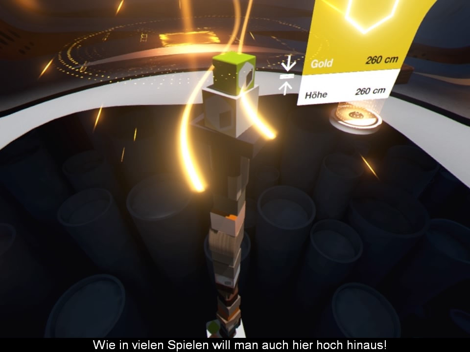 Da es bei "Tumble VR" um eine hohe Genauigkeit ankommt, steht und fällt das mit Spiel mit dem Tracking der Move Controller. Und seid beruhigt. Das Tracking ist perfekt und das Phänomen der wackeligen Hände/Controller aus anderen Spielen ist "Tumble VR" fremd! Sollte ein Turm also einstürzen, liegt dies allein an euch. Einzig das drehen der Bausteine ist etwas hakelig und nervt ein wenig, wenn man unter Druck steht. Mittels des Controller kann man die Plattformen dabei beliebig drehen, sowie hoch und runter fahren, damit die Übersicht stets gegeben ist. Dank der virtuellen Realität kann man mit dem Kopf zudem ganz nah ran und auch mal schnell um die Ecke schauen. Das ist so immersiv, dass man sogar die Hände weg streckt, so dass man nicht aus versehen den Turm umwirft. Und das kann schneller passieren als einem lieb ist. Ist man mit dem Kopf nämlich zu nah dran, fällt der Turm in sich zusammen. Dabei gibt es noch viele andere schöne Details. Hat man zum Beispiel einen Baustein in der Hand, kann man diesen an den Kopf schlagen und hört dabei, um was sich sich für Material handelt. Einige Bausteine haben auch integrierte Lautsprecher. Technisch gibt es am "Tumble VR" ebenfalls nichts zu beanstanden. Alles läuft flüssig, die verschiedenen Materialien haben entsprechende Strukturen und die Räume sind mit ihrem sehr räumlich wirkenden Look schön anzusehen und man entdeckt beim umschauen sogar den ein oder anderen versteckten Stein.