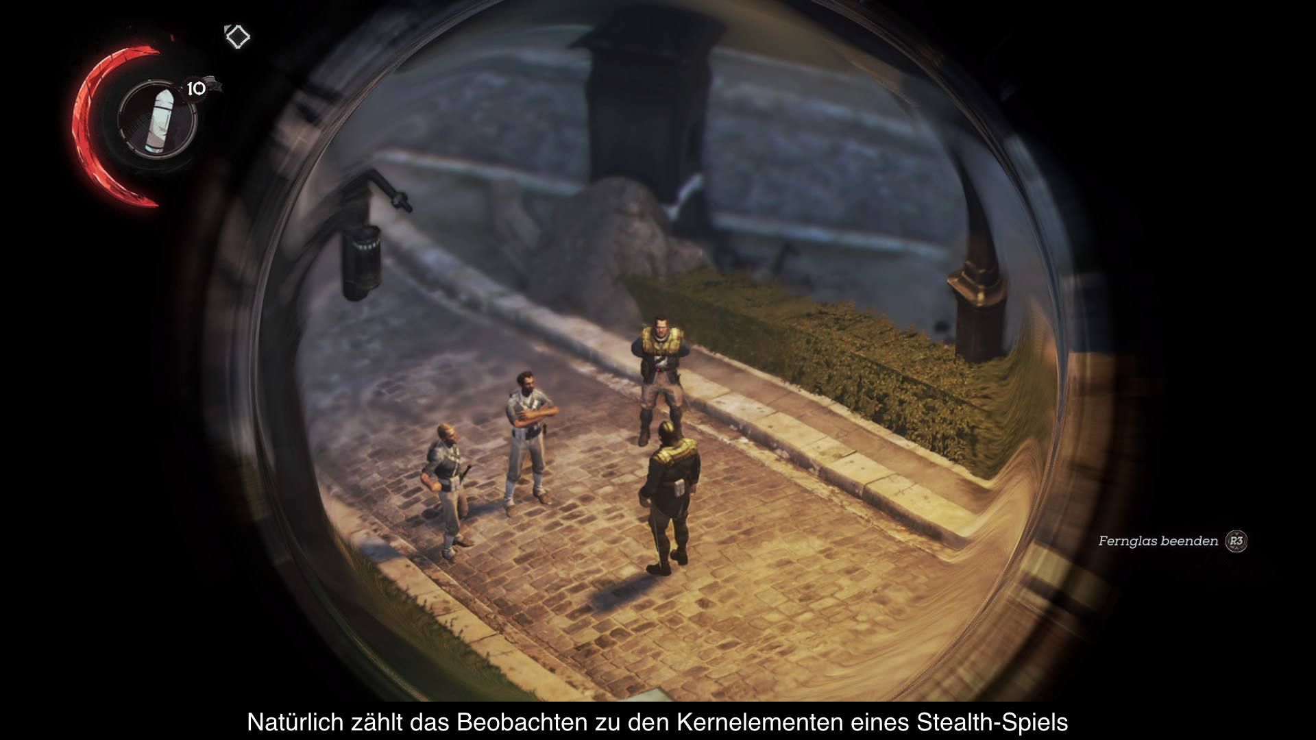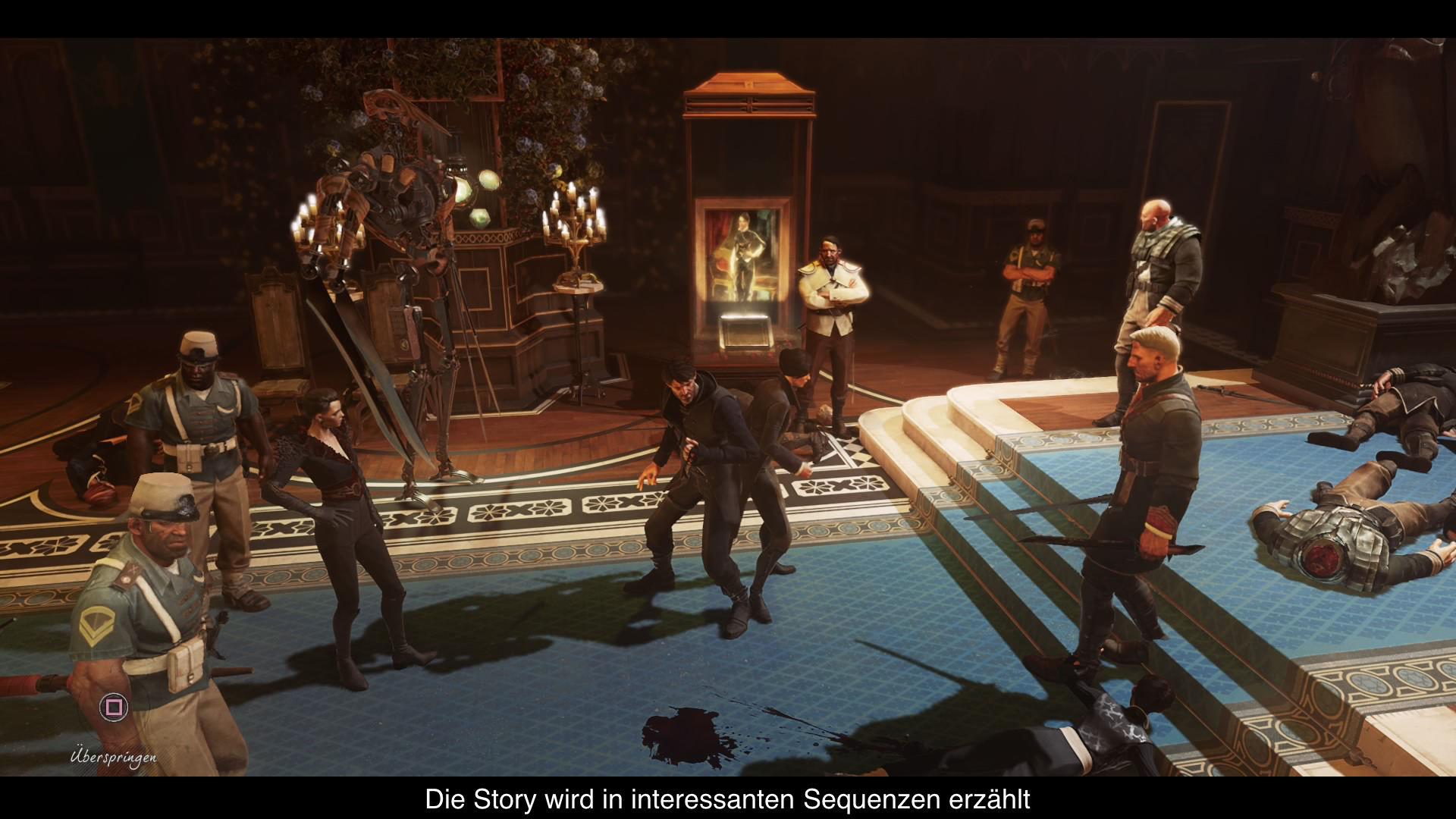 Dishonored 2 mit seinen Städten Dunwall und Karnaca ist ein fantastisches Beispiel für die Kraft einer detaillierten Spielewelt. Vor allem die Erzählweise überzeugt dabei im großem Stil: Egal ob durch die Worte der Charaktere, die Veränderungen in der Umwelt oder die Notizen und Tagebücher in den Häusern. Die Hauptgeschichte selbst ist äußerst packend, ohne jedoch in ein großes Drama auszuarten. Fans des Vorgängers dürfen sich jedenfalls auf eine packende Achterbahnfahrt der Emotionen freuen. Aber auch Neueinsteiger werden sich dank einer kurzen Nacherzählung schnell gut zurecht finden. Ein weiterer Grund warum Dishonored einfach funktioniert ist die gelungene Optik des Spiels. Es hat möglicherweise nicht die besten Texturen im Genre oder gar die schönsten Effekte, aber das Design der gesamten Spielewelt ist einfach super atmosphärisch und ein Traum für Steampunk-Fans. Mit Dishonored 1 und 2 ist es Arkane Studios gelungen, eine markante und einzigartige Welt zu entwickeln, die man sofort auf dem ersten Blick erkennt. Was die technische Seite angeht, fallen gelegentlich einige Framerate-Drops auf, die bei vielen Gegnern oder komplexen Umgebungen auftreten. Manchmal sind diese Drops gar so stark, dass sie das Geschehen merklich beeinflussen. Eine wenig mehr Optimierung wäre wünschenswert gewesen. Alles in allem konnte ich mich angesichts der vielen positiven Aspekte des Spiels jedoch damit abfinden. Was den Sound angeht verfügt Dishonored 2 sowohl über einen soliden Soundtrack als auch über erstklassige deutsche Synchronsprecher, die ebenfalls einiges zur Atmosphäre beitragen.