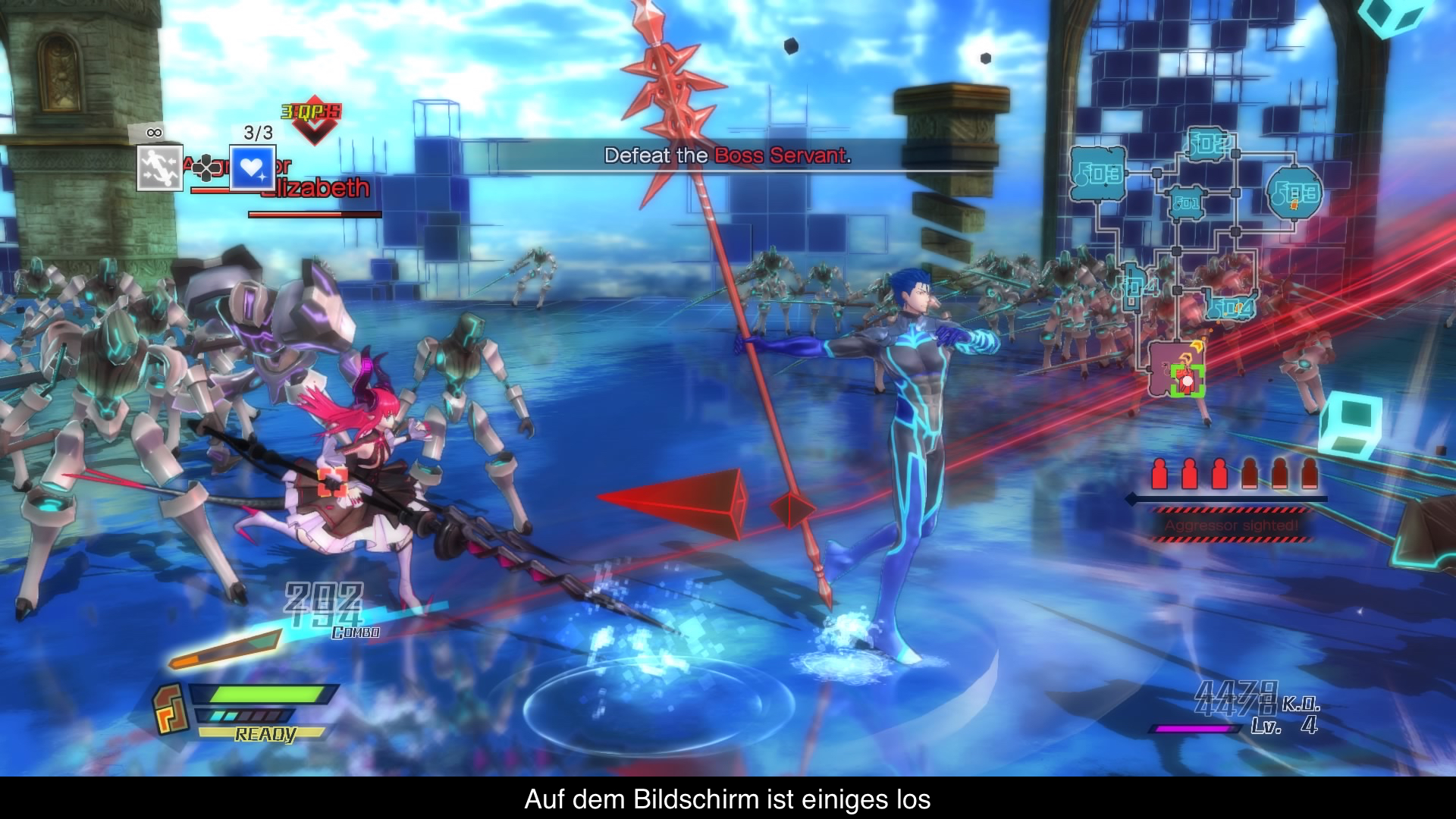 Mehr Positives wird man nicht mehr finden, da es eine Vielzahl an negativen Punkten gibt. Starten wir mit der Zielerfassung. Einen Boss zu erfassen ist so gut wie unmöglich, denn das System scheint diesen Befehl immer zu ignorieren. Dies ist noch ein Punkt, denn man mit der Zeit umzugehen lernt, die anderen hingegen nicht. Im Gegensatz zu den einfachen Fußsoldaten halten Bosse einiges mehr aus. Die Lebensleiste zu minimieren ist ein langes Unterfangen, wo man allzu oft auf billige Tricks zurückgreifen muss, wie die Spezialleiste zu füllen um denselben Angriff immer und immer wieder auszuführen. Auch die KI Mitstreiter sind hier keine Hilfe. Während man mit den Bossen kämpft, verliert man ein Gebiet nach dem anderen. Diese Terretorien fallen viel zu schnell und ohne große Gegenwehr. Selbst die eigenen Servents sind hier keine Hilfe und werden zu schnell vom Gegner besiegt. Bezüglich Gegner Vielfalt gibt es auch nur die Note Mangelhaft. Es gibt gefühlte fünf Klassen auf dem Spielfeld. Neben der grafischen Gestaltung unterscheiden sich diese nur durch den Schaden, die sie verursachen. Diese negativen Punkte, gepaart mit den immer gleichen Missionskarten zehren gewaltig am Spielspaß und an der Langzeit Motivation. Da hilft es auch nichts, dass man Nebengeschichten von anderen Servents vorhanden sind.