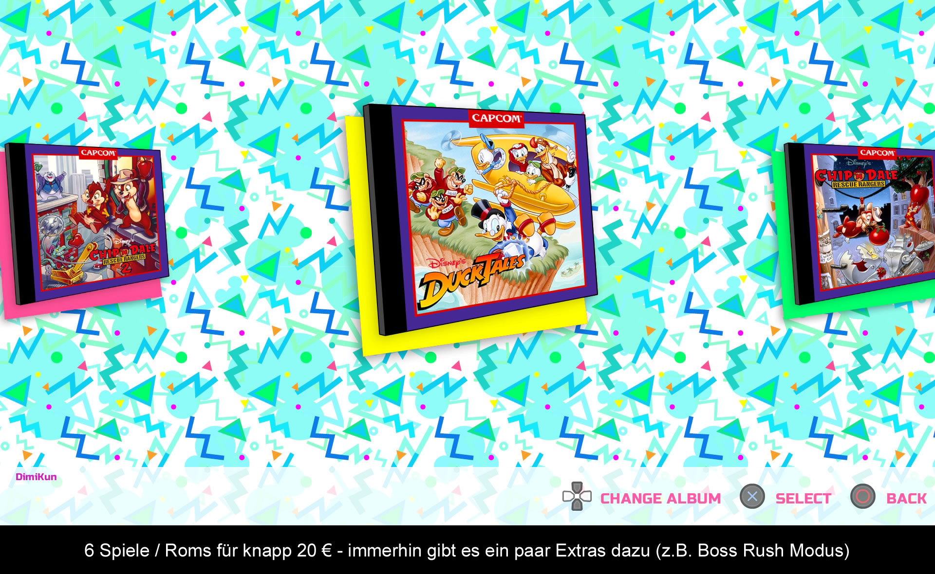 Obwohl sich die Serien untereinander unterscheiden, haben sie dennoch alle eine große Gemeinsamkeit: Und zwar einen äußerst fordernden Schwierigkeitsgrad. Vielleicht liegt es daran, dass ich inzwischen nicht mehr der Jüngste bin, aber zugegebenermaßen hatte ich die Spiele etwas einfacher in Erinnerung, vor allem Ducktales. So dauerte es bei mir jedoch nicht lange bis ich an meine Grenzen stoß. An dieser Stelle kommt jedoch das neue Replay-Feature zum Vorschein, mit dem man in jedem Spiel die Zeit zurückschrauben und seinen Fehler korrigieren kann. Manch einer mag es vielleicht als Cheaten ansehen, mir persönlich hat es jedoch sehr dabei geholfen, diese virtuelle Zeitreise umso mehr zu genießen. Neben den Kampagnen bietet die Kollektion aber auch noch zwei neue Modi für jedes Spiel, und zwar Boss Rush und Time Attack. Während man bei ersterem abermals sämtliche Endgegner in Angriff nehmen kann, geht es in letzterem darum, die einzelnen Level so schnell wie möglich zu beenden. Im Anschluss könnt ihr euer Ergebnis auf einer Online-Rangliste mit anderen Spielern vergleichen. Ein weiteres Feature, welches mir sehr gefallen hat, ist die Hinzugabe von Design-Docs, Verpackungen und Soundtracks in digitalisierter Form - Lobenswert! Ebenso lobenswert ist auch die Speicherfunktion ausgefallen, die sich einmal pro Spiel aktivieren lässt. Wer also plötzlich mal den Controller beiseitelegen muss, findet hier eine günstige Alternative zum Ruhemodus der PS4.