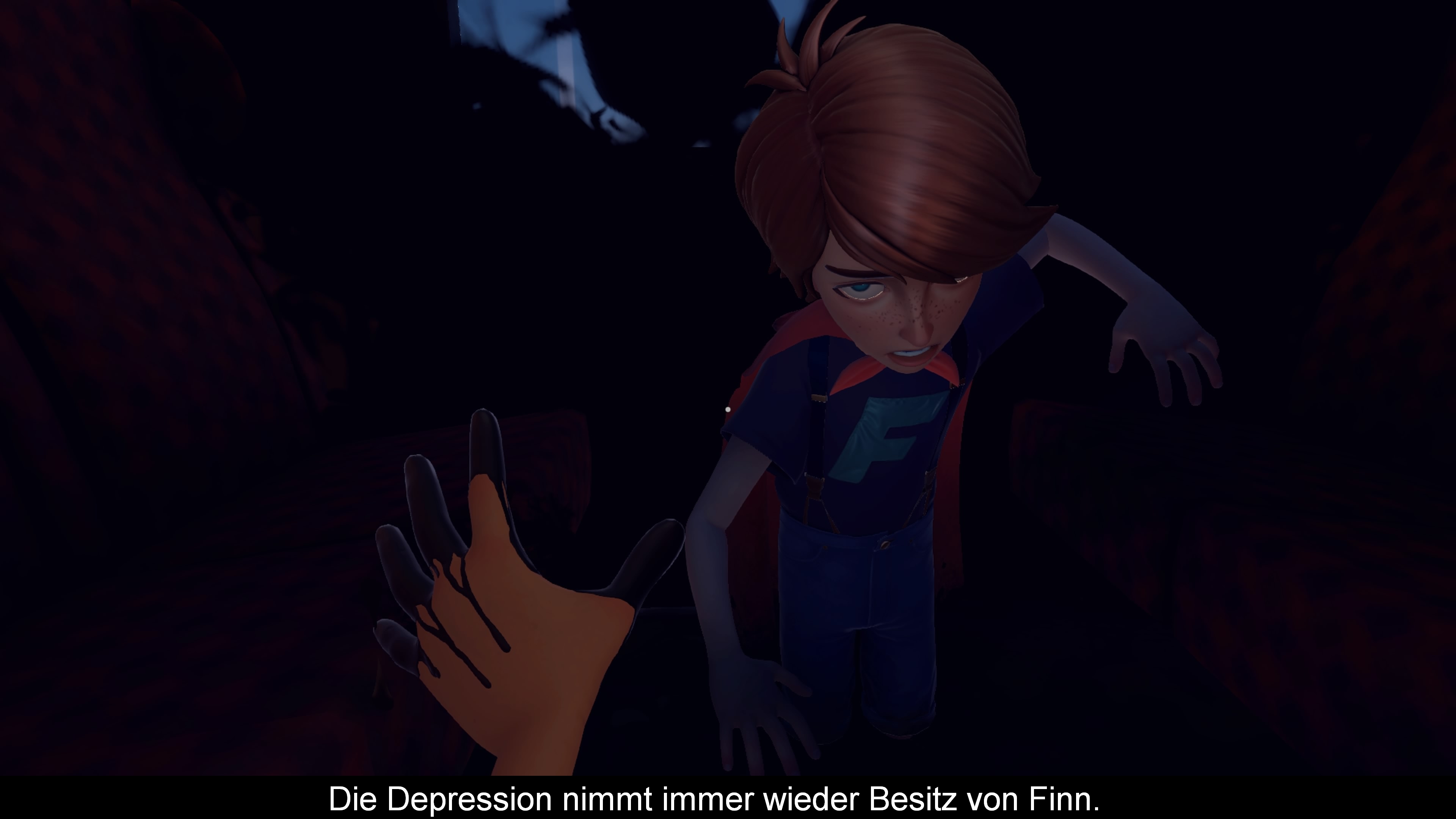So erfahre ich recht schnell, dass die Geschwister einen Großteil ihres Lebens bei ihren Großeltern verbrachten und sie sich oft nur selbst hatten. Doch Zeiten und Menschen ändern sich, das Leben geht weiter und Finn fühlt sich zunehmend vernachlässigt, als Scarlett zum Beispiel ihren ersten Freund kennen lernt. So flüchtet sich Finn in seine eigene Welt, leidet an Depressionen und zieht sich immer mehr zurück. An ihn heranzukommen fällt somit immer schwerer, was mir im Spiel durch wabernden schwarzen Nebel visualisiert wird.