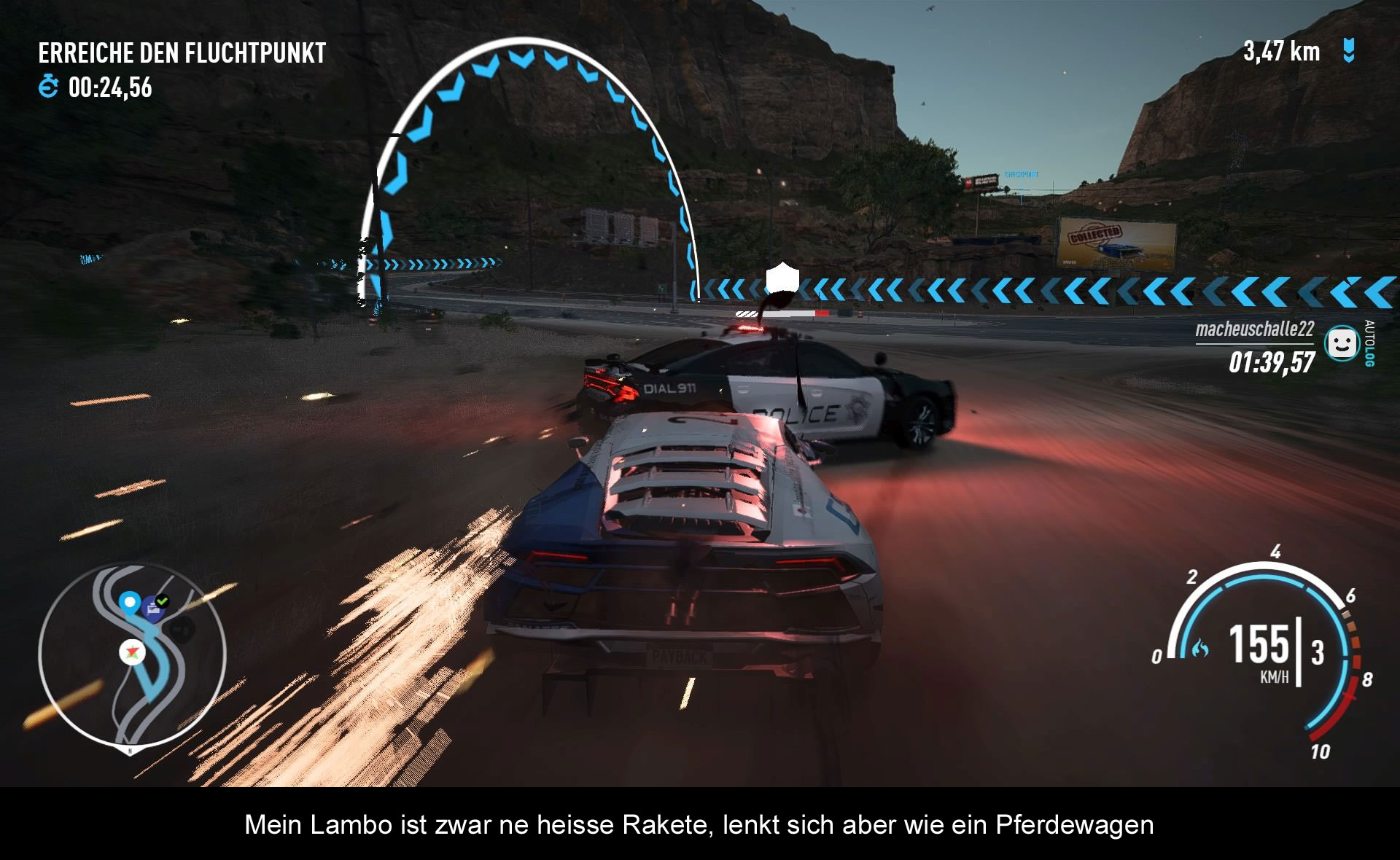 …treibt mich noch in den Wahnsinn! Ein Arcade-Rennspiel braucht eine knackige Lenkung und keine indirekte Badewannensteuerung. Wie schon im Vorgänger nimmt die Steuerung dem Spiel viel Wind aus den Segeln. Ich drücke den Stick in eine Richtung und eine gefühlte Minute später bewegt sich der Wagen dann endlich. Zwar kann man über das Live-Tuning Menü, die Sensitivität der Sticks erhöhen, doch wirklich glücklich wird man damit nicht. Dazu kommt noch das Auto-Driften! Bei hoher Geschwindigkeit muss man hart Einlenken, um einen Drift zu starten. Das funktioniert in etwa 50% der Fälle. Droht man aus der Kurve zu fliegen, hilft nur noch die Handbremse, dann läuft man jedoch Gefahr, die Kurve zu eng zu nehmen und dreht sich eventuell. Gefühlvoll bei hoher Geschwindigkeit die Bergpisten oder Canyons zu nehmen, ist hier ein Ding der Unmöglichkeit. Offroad sieht es auch nicht viel besser aus, die Jeeps haben weniger Grip, springen spektakulär, aber lassen sich schlecht um eben die Kurven bewegen. Und bei allem Übel, die Speed-Karten verbessern nicht etwa das Fahrverhalten. Nein, eher können sie dafür sorgen, dass sich das getunte Automobil danach noch schlechter lenken lässt.