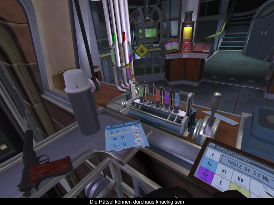 Im Spiel ist man ein Geheimagent, welcher dem bösen Dr. Zor immer wieder einen Strich durch die Rechnung machen muss. Dazu gibt es vier Level (mit dem kostenlosen Update sogar fünf), welche euch damit beauftragen großes Unheil von der Welt abzuwenden. Zum Beispiel muss man einen Supervirus neutralisieren oder ein Killerauto entsorgen. Spielerisch könnte man das Spiel dabei am ehesten mit Escape Rooms vergleichen. Ihr sitzt nämlich an einem Schauplatz und müsst dort mit euren Mitteln kleinere Puzzle lösen. Dann arbeitet ihr euch im Level Schritt für Schritt vor. Zum Beispiel müsst ihr ein Auto starten, dabei die Antidiebstahlsicherung überwinden, damit ihr so das Fenster herunter lassen könnt, um an einen Schraubenzieher zu kommen usw. Das ist hin und wieder etwas Trial and Error, macht am Ende des Tages aber fast immer Sinn. Wer jedoch Fehler macht, segnet meist das zeitliche und dann beginnt man von Neuem. Dies kann manchmal etwas frustrierend werden und Checkpoints wären schön gewesen. Jedoch sind die Level unglaublich kurz, wenn man weiß, wie sie zu lösen sind. Das ist letztlich eines der größten Probleme des Spiels, weil unterm Strich könnte man das Spiel in 30 Minuten beenden und die Motivation für ein erneutes Spielen der Level fehlt.