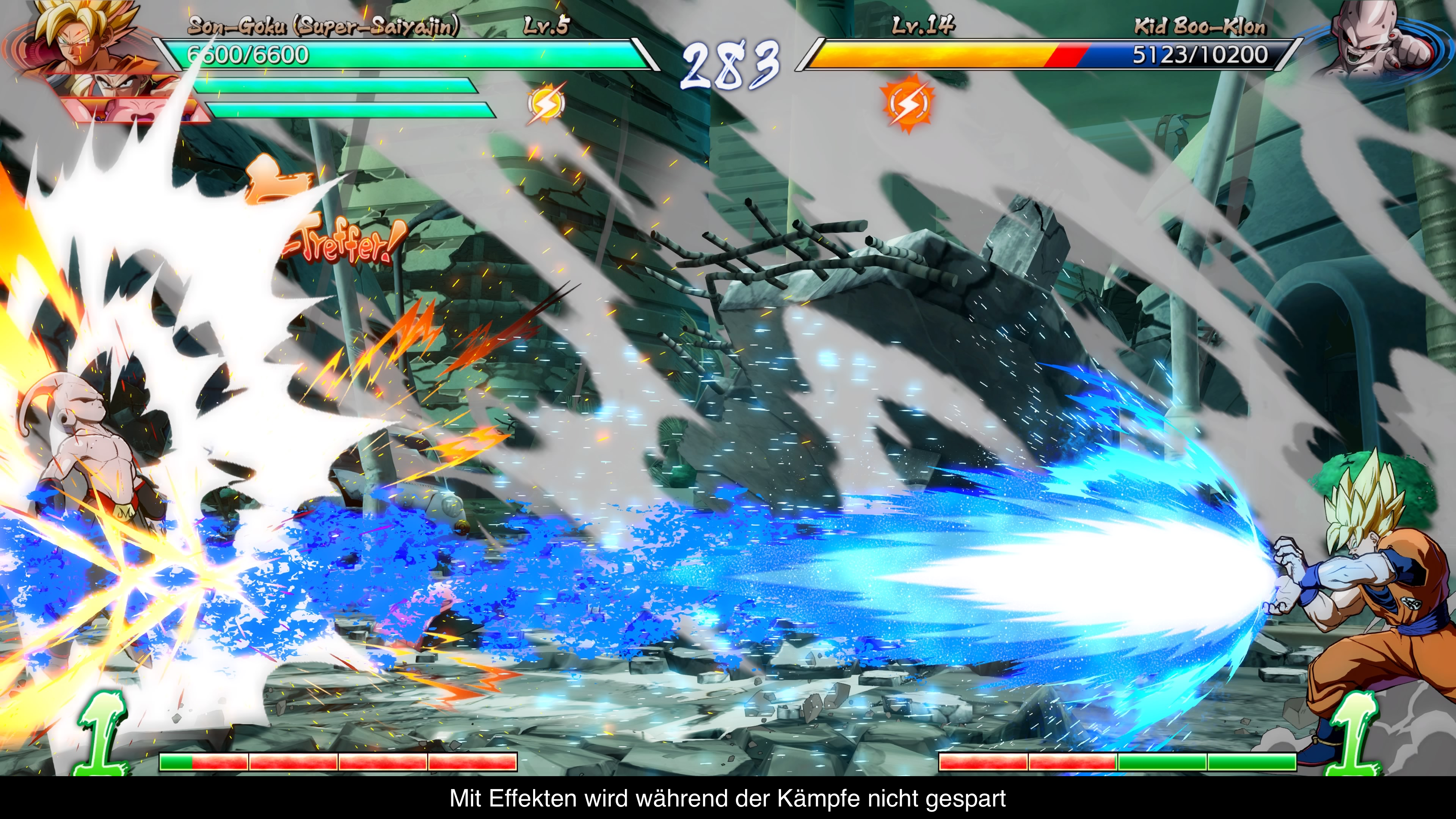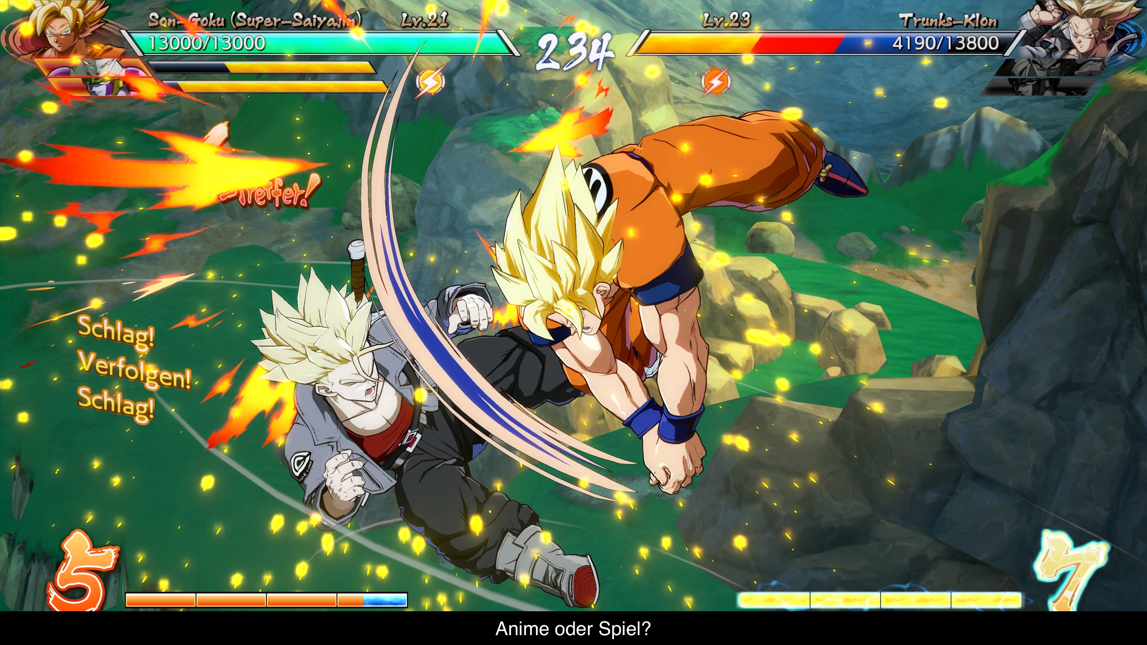 Dragon Ball FighterZ ist ein klassisches Beat`em Up, wie man es vielleicht von Tekken oder Street Fighter her kennt. Einer der größten Unterschiede ist jedoch, dass man nicht im 1 vs. 1 antritt, sondern im 3 vs. 3. Zwar kontrolliert man immer nur einen Charakter, jedoch kann man mit den Schultertasten die Charaktere wechseln oder sie zur Hilfe rufen, um den Gegner zum Beispiel anzugreifen oder den eigenen Angriff noch verheerender zu machen. Klingt simpel, bieter aber erstaunlich viele Einsatzmöglichkeiten und wer zu den besten der Besten gehören möchte, wird diese Technik entsprechend meistern müssen. Um Anfänger aber nicht zu demotivieren, gibt es die sogenannte Autocombos. Hier kann man durch simples Drücken einer Angriffstaste schon längere Kombos einleiten, die auch beträchtlichen Schaden anrichten. Auch sind die aus der Serie bekannten Super-Angriffe, wie Vegetas Final Flash oder Gohnas Vater-Sohn-Kamehameha recht einfach auszuführen. Man muss nur einen Viertelkreis mit dem Analogstick vollführen und die Angriffstaste drücken. Da diese Angriffe aber auch leicht geblockt werden müssen, ist gutes Timing gefragt oder man meistert die Combos. Denn mit den richtigen Combos kann man solche Angriffe an seine Combo anhängen ohne das der Gegner eine Chance hat dies zu verteidigen. So trennt sich letztlich die Spreu vom Weizen und jeder Spieler kann passend zu seinem Level seinen Spaß haben.