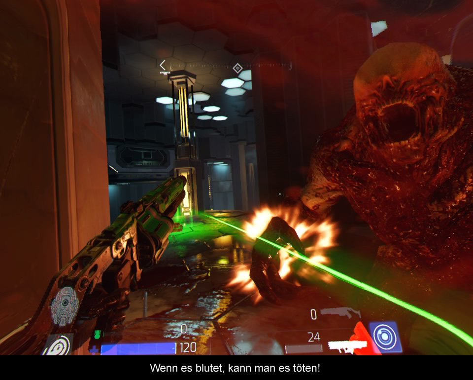 Solch ein schnelles und actionreiches Gameplay erfordert natürlich eine schnelle Reaktion am Eingabegerät, denn ohne die volle Kontrolle kann man „DOOM“ in der Pfeife rauchen. Zur Auswahl stehen auf der Playstation mit dem DualShock 4, dem Move und den Ziel Controller drei Steuerungsarten. Während sich „DOOM VFR“ mit dem DualShock 4 fast wie ein normaler First Person Shooter spielt, steigt die Immersion mit dem Ziel Controller fast bis zum Siedepunkt. Bei beiden Steuerungen kann man zwischen einer freien und einer Teleport Bewegung frei wählen. Auch die Drehungen lassen sich bis ins Detail anpassen, womit jeder seine Bedürfnisse und Vorlieben einstellen kann. Aufgrund der schnellen Action sei aber gesagt, dass das Spiel auch mal schnell auf den Magen schlagen kann. Das coole beim Ziel Controller ist natürlich die Haptik und das man auch locker aus der Hüfte schießen kann. Einzig das Waffenrad zum Wechseln der Schießprügel ist etwas ungünstig gelegen und kann bei hektischen Momenten schnell mal verfehlt werden. Ebenfalls stört ein wenig, dass bisher eine Rumble Funktion fehlt. Nutzt man den Ziel Controller sollte man am besten auch im Stehen spielen, was nicht nur den Magen schont, sondern dem Überblick ebenfalls zugutekommt. Als kleine Hilfe zeigt der Radar am oberen Rand auch die Position der Kamera an, was besonders mir immer wieder geholfen hat. Aufgrund der Konzeption der PSVR leidet nämlich das Tracking, wenn man mit dem Rücken zur Kamera steht. Letztendlich ist das auch einer der wenigen Kritikpunkte, da man immer auf die Kamera achten muss und der 180 Grad Turn in Fleisch und Blut übergehen sollte. Ebenfalls Kritik gibt es beim benutzen des Move Controller zu vermelden. Zum einen ist man hier nur auf die Teleportation beschränkt, zum anderen ist das alles sehr frickelig und hakelig, was den Spielspaß extrem hemmt und „DOOM VFR“ noch schwerer macht. Also lasst die Dinger am besten in der Schublade.
