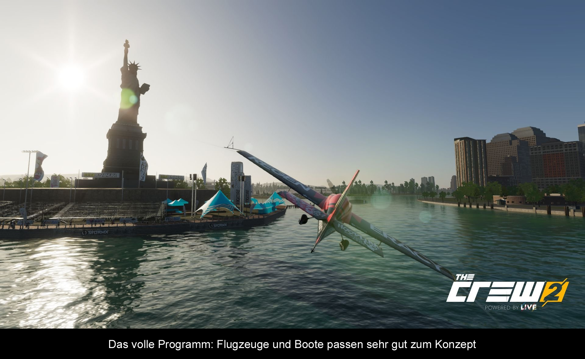 Der größte und auffälligste Unterschied zum Vorgänger ist die Erweiterung des Fuhrparks. Statt sich nur auf Autos und Motorräder zu konzentrieren, sind nun auch Flugzeuge und Boote mit von der Partie. Das fördert natürlich die Abwechslung und hebt das Spiel auch wohlwollend von den anderen Open World Rennspielen ab. Ansonsten gibt es in „The Crew 2“ (zum Glück) keine B-Movie Hollywood Story mehr, sondern es geht um ein Festival – das Motornation Festival. Um der Kampagne etwas mehr Substanz zu verleihen, gibt es allerdings immer noch Zwischensequenzen, mit denen man sich aber keinen Gefallen getan hat. Erstens sind die Rivalen allesamt blasse Pappnasen und zweitens wirken die Filmchen und Dialoge schon ziemlich amateurhaft. Aber okay, die meiste Zeit verbringt man sowieso in einem Fahrzeug auf der Straße oder eben im Wasser bzw. in der Luft, da kann man über das eher schmucklose Beiwerk hinwegsehen.