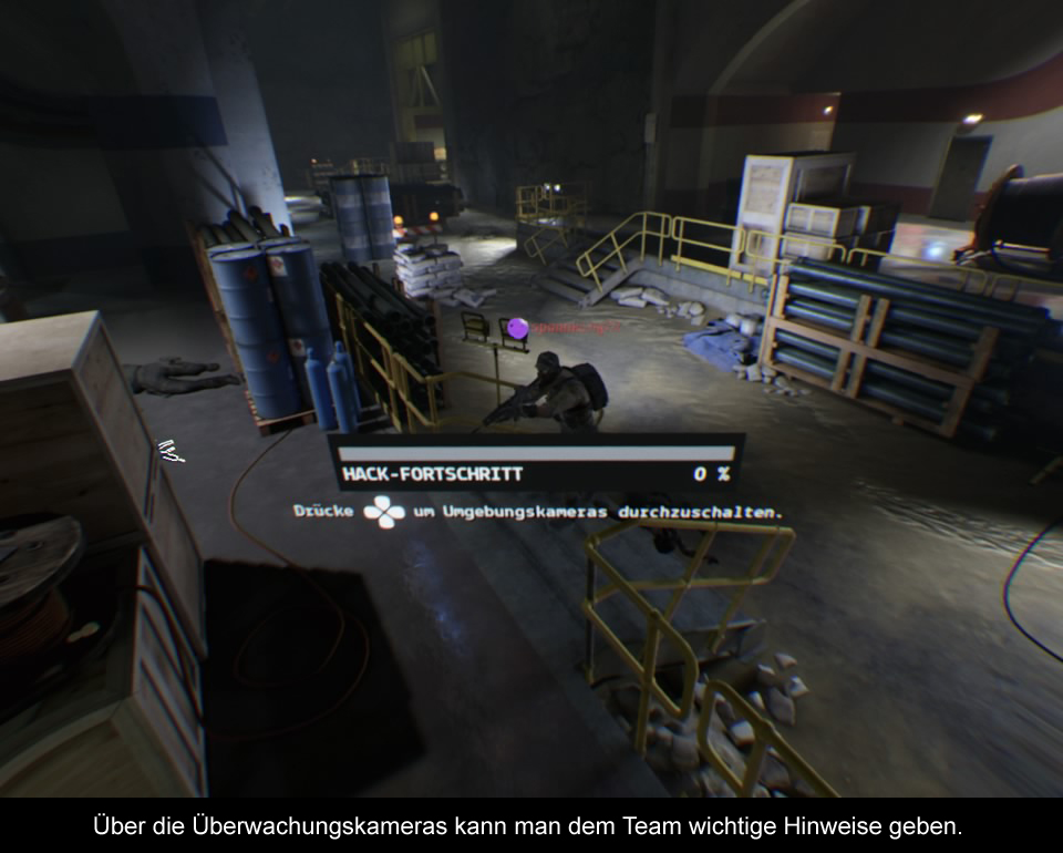 Außerdem werden Spieler mit niedrigem Level immer mal wieder in Runden mit zu starken Mitspielern geworfen. Dies sorgt nicht nur wegen dem mehr an Erfahrung für etwas Frust, denn mit höherem Level erhält man auch besseres Equipment. Das reicht von rein optischen Modifikationen wie Klamotten und Waffenskins über bessere Waffen mit weniger Rückstoß, höherer Schlussrate, größeren Magazinen und Durchschlagskraft bis hin zu Gimmicks wie Störsendern, Laserpointer und einer Ghostfähigkeit. Die Störsender verhindern nämlich das Hacken des Laptops und müssen erst gefunden und deaktiviert/zerstört werden. Diese zu finden ist teils nicht einfach, wenn man den als Neuling überhaupt weiß, dass es so etwas gibt. Ich stand zumindest anfangs ziemlich auf dem Schlauch, was arg genervt hat. Bei der Ghostfähigkeit ist es dagegen so, dass einem Minen nichts mehr anhaben können. Schön ist allerdings, dass man getöteten Kontrahenten die primäre Waffe für das laufende Match abnehmen und nutzen kann. Dabei sind die Gimmicks nicht nur ans Geld, sondern auch die Erfahrungspunkte, bzw. das Level gekoppelt. Beides erhält man im Spiel durch Siege, Kills, Hacks, versteckte Dokumente, Wiederbelebungen und einen geringen Betrag auch bei einem verlorenen Match. Mikrotransaktionen gibt es zum Glück keine.