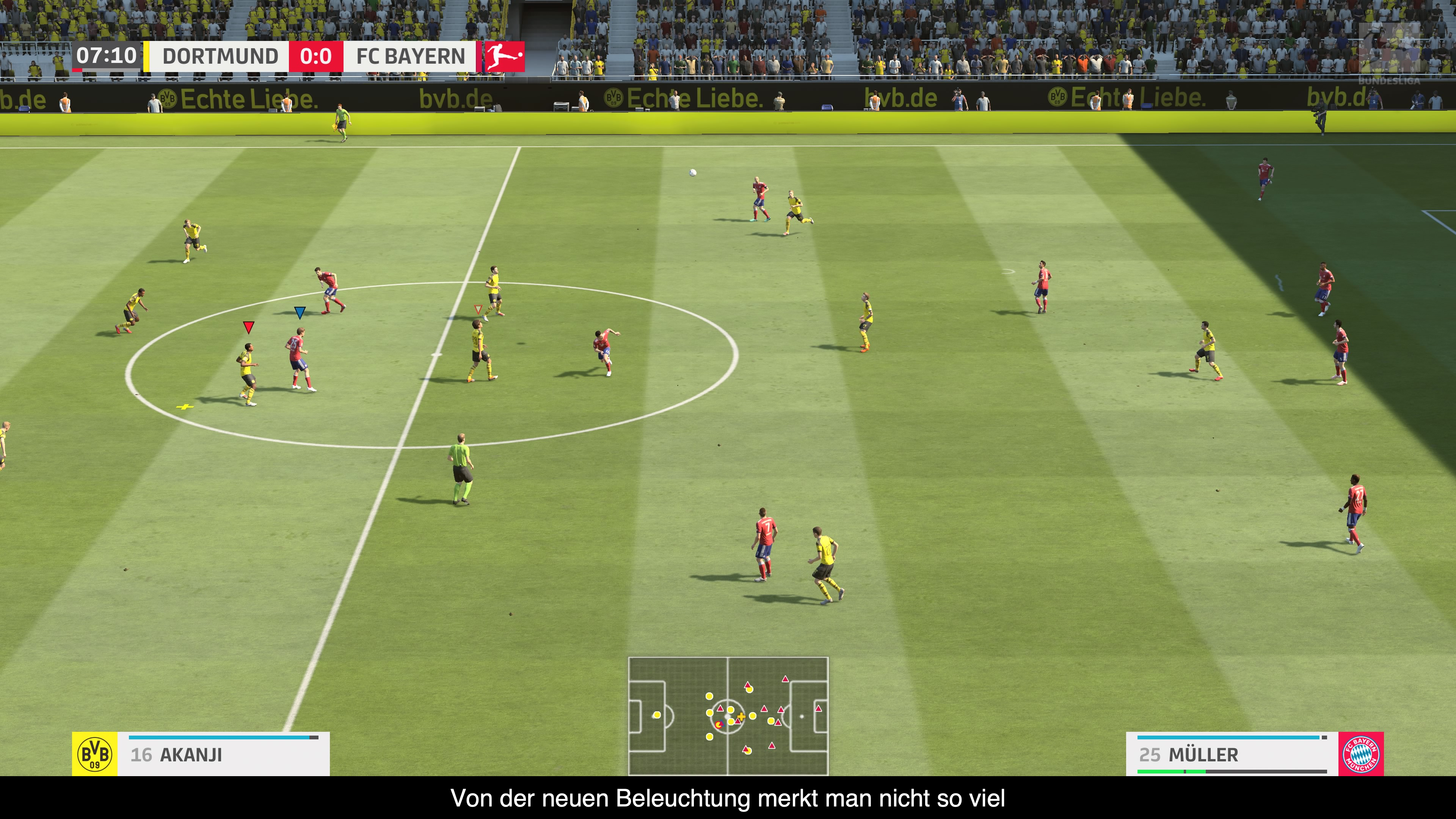 Was die Grafik angeht, gibt es dieses Jahr bestenfalls minimale Verbesserungen. EA Sports brüstet sich damit das die Beleuchtung angepasst wurde, aber davon bekommt man wenig mit. Auch schwankt die Qualität der Spielermodelle stark und grafisch kann das Spiel mit der Konkurrenz nicht mithalten. Einzig die Animationen sind wieder auf einem anderen Level und gehen weiterhin butterweich ineinander über und wurden durch noch mehr Animationen erweitert. Schön anzusehen sind die Choreographien der einzelnen Mannschaften, die schon mal das Profil eines Spielers als Banner hochziehen oder das Vereinslogo markant präsentieren. Fangesänge & Co. gehören natürlich dazu und die Kommentatoren machen einen gewohnt guten Eindruck, indem sie nicht nur auf das Spielgeschehen eingehen, sondern auch auf aktuelle Entwicklungen der Fußballwelt.