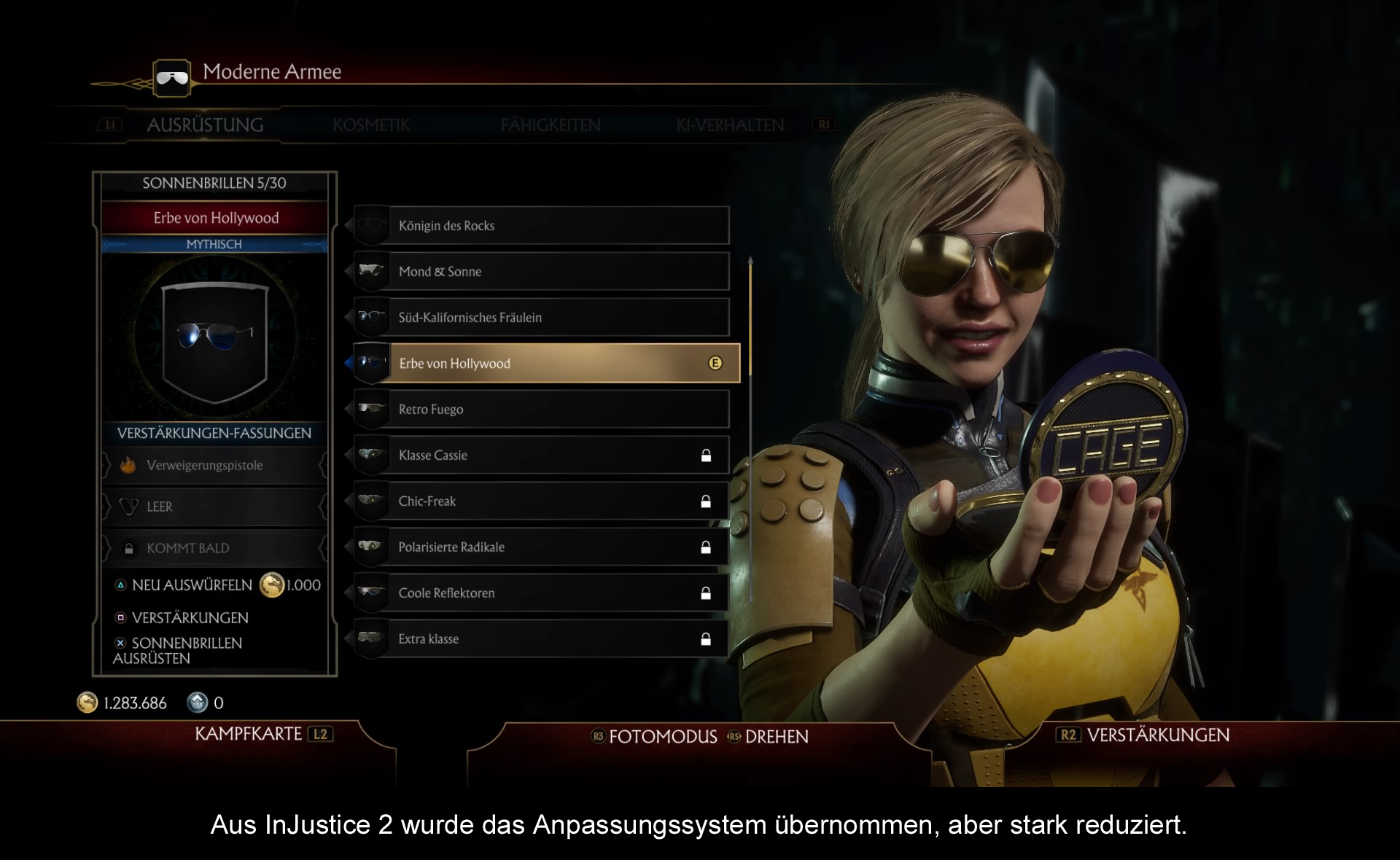 Neu ist übrigens auch das Ausrüstungssystem, welches so ähnlich schon in InJustice 2 vorkam. Bei jedem Charakter kann man drei Ausrüstungsgegenstände individuell anpassen, sofern man sie erspielt hat. Dadurch soll etwas Abwechslung dazu kommen, doch fallen diese kosmetischen Änderungen im Kampf kaum auf. Auch kann man nun aus einem Pool von verschiedenen Attacken wählen und so seinen Kampfstil individueller anpassen. Zu guter Letzt gibt es noch Intros, Outros und die Beleidigungen zwischen den Runden, welche sich personalisieren lassen. Erspielt werden diese Boni in der Krypta, mittlerweile fixer Bestandteil der Reihe. In einer Art Action-Adventure light kann man Shangs Tsungs Insel erkunden und mit verdienten Koins Schatztruhen freischalten, die wiederum allerhand Ausrüstung, Skizzen, Skins, etc. enthalten. Damit es dort nicht langweilig wird, muss man hier und da auch kleinere Rätsel lösen. Fans der Serie kommen hier voll auf ihre Kosten, da es ein Easter Egg nach dem anderen zu bestaunen gibt.