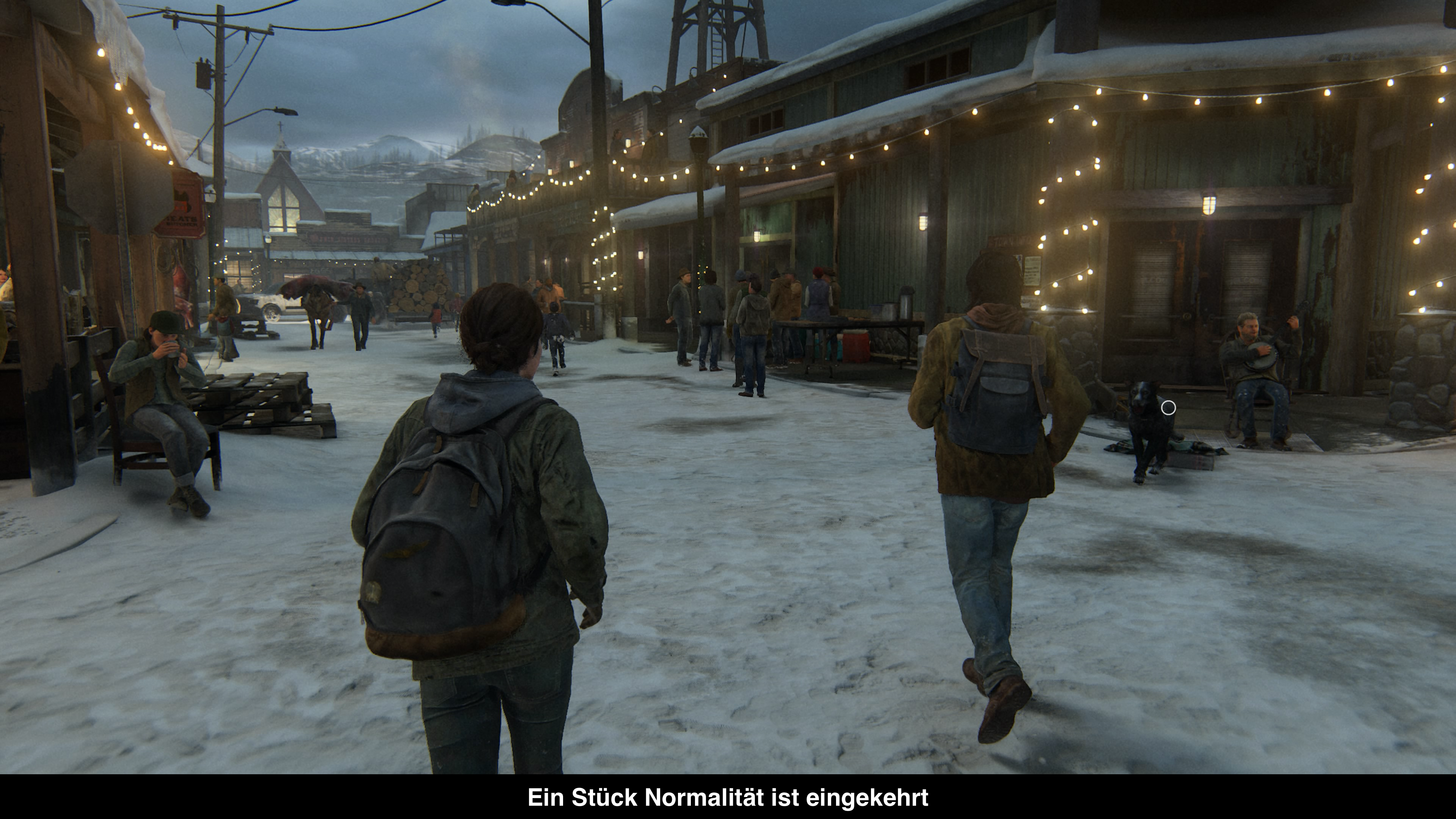 Auch musikalisch lässt sich das Spiel nicht lumpen. Die Musik kommt wieder aus der Feder von Gustavo Santaolalla und so wird man mit zahlreichen minimalistischen Gitarrenkompositionen begrüßt, die zahlreiche Momente gekonnt in Szene setzen. Zudem bietet das Spiel wieder eine Synchronisation in allen erdenklichen Sprachen an und die deutsche Sprachausgabe ist sehr gelungen. Das beste Erlebnis erhält man meiner Meinung nach zwar mit der englischen Synchro, aber man kann ja glücklicherweise im Menü frei zwischen den einzelnen Sprachen wählen. Insgesamt gibt es unzählige Optionen im Menü, die sich insbesondere an die Barrierefreiheit richten. The Last of Us Part II soll von möglichst vielen Spielern genossen werden können und deshalb bieten die Entwickler allerlei Optionen. Beispielsweise gibt es Helferlein, wie aufleuchtende Collectibles oder eine Anzeige wo es weitergeht. Es gibt aber z.B. auch Optionen, um Farbenblinden Menschen zu helfen und noch vieles mehr. Hoffentlich werden diese Optionen im Videospielbereich zum Trend, um allen Zockern die Möglichkeit zu geben, ihre Erlebnisse zu feiern.