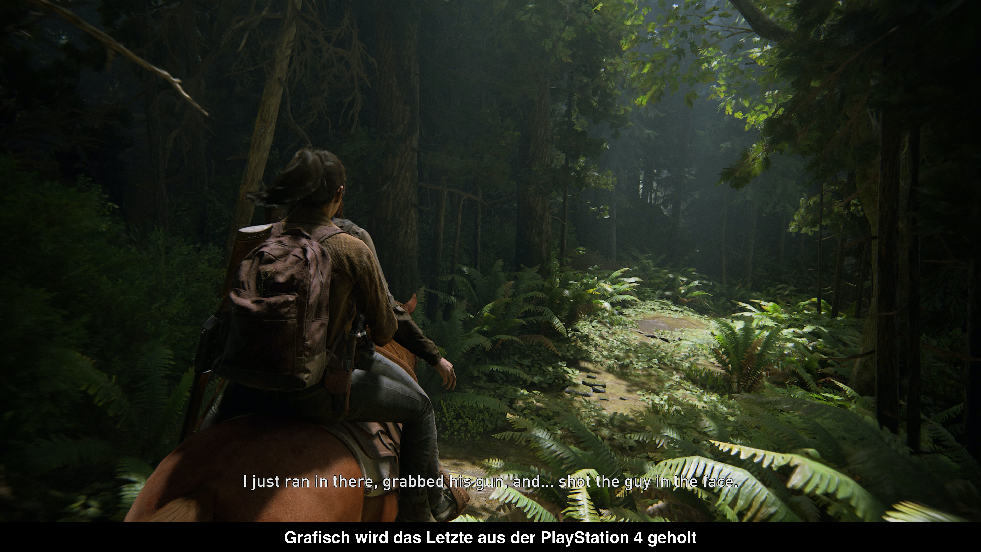 Das Naughty Dog das letzte aus den Konsolen herausholen kann, haben sie bereits mehrfach unter Beweis gestellt. Mit The Last of Us Part II haben sie sich aber selbst übertroffen. Wenn man es nicht besser wüsste, könnte man meinen ein PS5-Spiel zu spielen. Das Spiel sieht durchwegs umwerfend aus. Die Umgebungen sind größer und detaillierter denn je. Wer das erste Mal durch den Wald vor Seattle reitet, dem wird die Kinnlade auf den Boden fallen. Solch eine dichte und realistische Vegetation sieht man nicht häufig. Auch andere Areale strotzen nur so vor Details und keine Ecke sieht aus wie die andere. Hinzu kommen wirklich hervorragende Animationen der Charaktere im Gameplay. Ellie öffnet Türen und greift nach Ressourcen wie man es noch nicht gesehen hat. Ein Lob verdient auch die Mimik der Charaktere, die insbesondere brilliert, wenn man einen Stealth-Kill landet. Hier sieht man wie Täter und Opfer beide bis aufs letzte kämpfen und kann richtig mitfühlen. Dabei läuft das Spiel nahezu konstant mit 30 Bildern pro Sekunde und 4k und solch ein scharfes Bild sieht man selten. Einen kleinen Wermutstropfen gibt es trotzdem. Das Spiel ist nämlich nicht ganz frei von Bugs. Mir ist das Spiel beispielsweise einmal abgestürzt und ab einem gewissen Punkt konnte ich keine Schalldämpfer mehr nutzen. Obwohl mein Schalldämpfer aufgebraucht war, konnte ich keinen neuen erstellen, weil das Spiel der Meinung war das ich noch einen hätte.