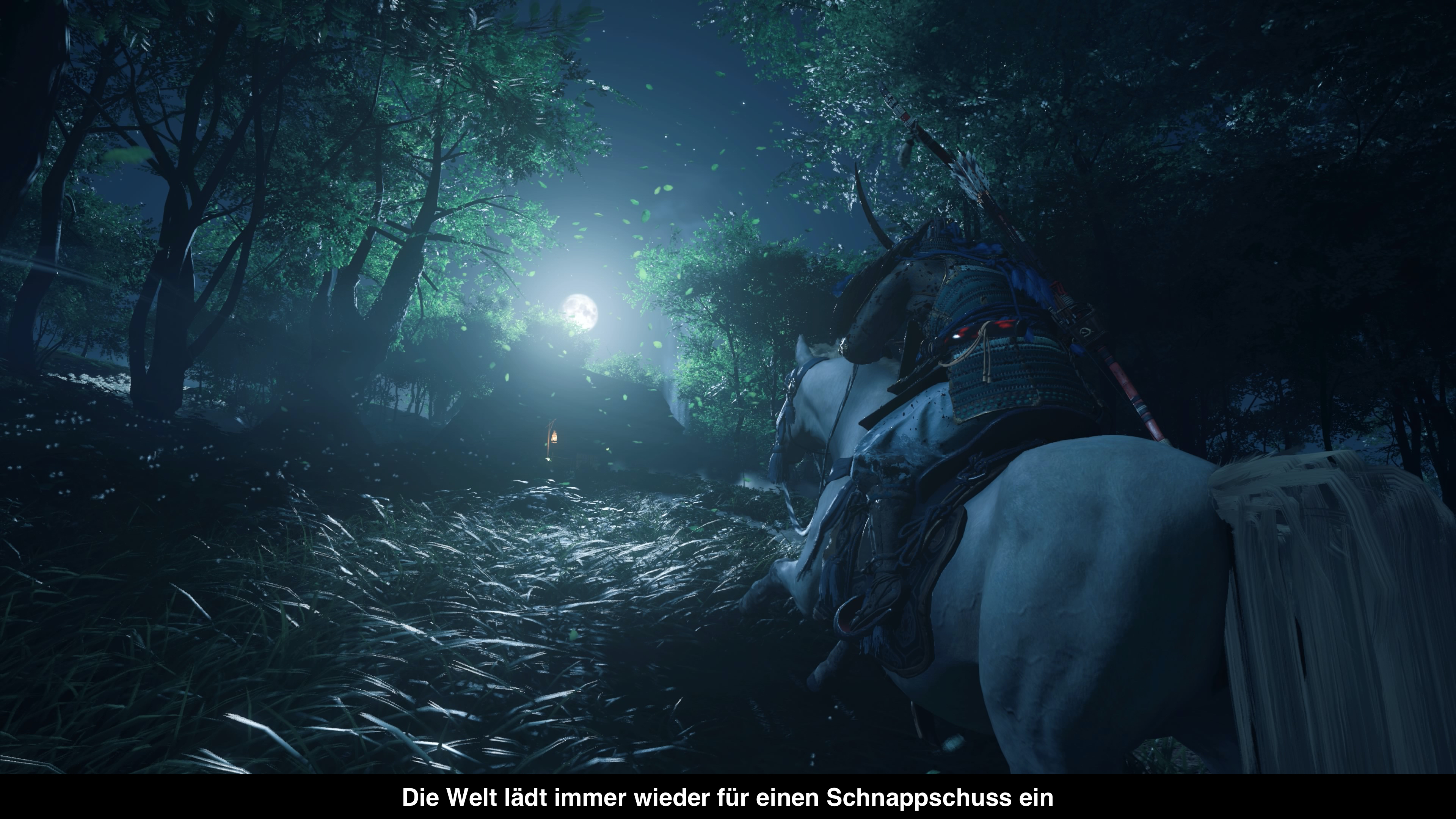 Bevor wir zu Grafik und allgemeiner Technik kommen, seien die Ladezeiten von Ghost of Tsushima erwähnt. Wie auch immer Sucker Punch dies geschafft hat, die Ladezeiten sind unglaublich kurz. Erstmals verdient der Schnellreise-Modus auch wirklich seinen Namen, weil man in ein paar Sekunden ans andere Ende der Karte wechseln kann. Hier haben die Entwickler super Arbeit geleistet. Aber auch ansonsten kann sich die Technik sehen lassen. Insbesondere grafisch wird einiges geboten. Die Welt von Tsushima mag zwar simpel sein mit vielen Feldern und Wäldern, aber die riesige Anzahl von Gräsern die sich realistisch im Wind bewegen, ist etwas was man so bislang noch nicht gesehen hat. Hinzu kommt die artistische Gestaltung die eher minimalistisch daherkommt, aber einfach super aussieht. Wenn der ganze Bildschirm in einem Wald in gelbe Blätter eingetaucht ist, wünscht man sich den Herbst herbei. Wie gut das der Fotomodus nur einen Tastendruck entfernt ist, um all das einzufangen. Dabei bietet der aber wirklich tolle Funktionen. So kann man z.B. die Tageszeit, die Windstärke, Blätter und vieles mehr völlig dynamisch einstellen, um das perfekte Bild einzufangen. Und all das läuft völlig problemlos in 4k mit 30 Bildern pro Sekunde auf der PlayStation 4 Pro.