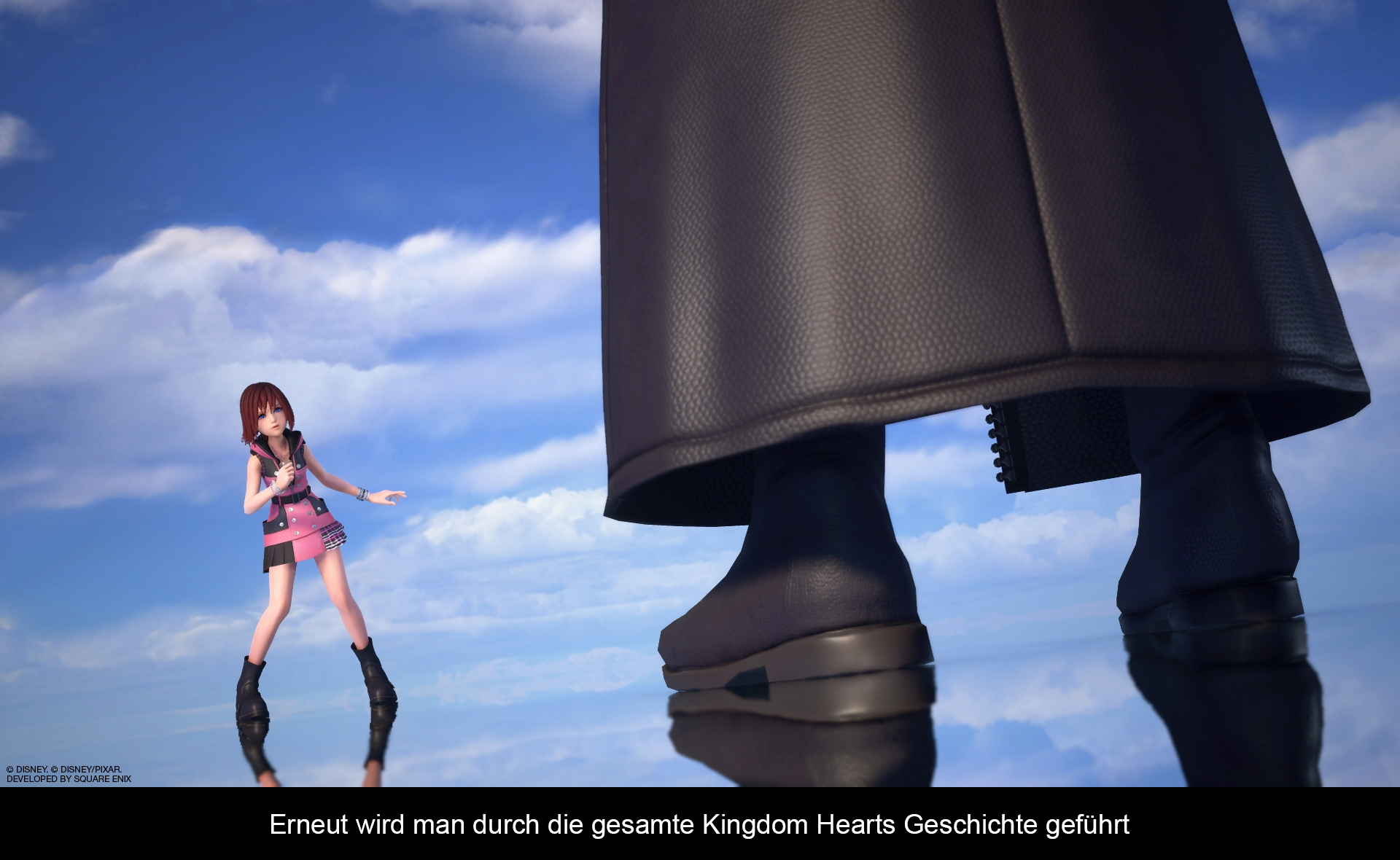 Was mich an Melody of Memory am Meisten überrascht hat ist die ungeheure Menge an Leveln und Melodien. Square Enix hat nicht gekleckert, sondern geklotzt. Die gesamte Serie wird Level für Level in Kurzform nacherzählt. Dabei durchrennt ihr viele Örtlichkeiten, die die gesamte Franchise umspannen - und zwar von Teil 1 bis 3 inkl. aller Spinoffs. Etwas Abwechslung bekommt man zwischendurch durch die vereinzelten Boss-Kämpfe, wo es darum geht mit erfolgreich ausgeführten Manövern die Energieleiste des jeweiligen Schurken auf Null zu bringen. Diese Bosskämpfe heben sich sowohl in Sachen Präsentation als auch Durchführung von den Standardleveln ab. Nach und nach wird die Geschichte der Franchise dann in Form von Zwischensequenzen weitererzählt. Doch erwartet nicht, dass ihr mit dem Durchspielen zu richtigen KH-Cracks werdet, da am Ende nur die wesentlichen Story-Elemente aufgegriffen werden. Wer wirklich alle Irrungen und Wirrungen der Franchise erleben möchte, muss weiterhin auf die Originalspiele zurückgreifen. Auch der emotionale Aspekt der einzelnen Lieder kommt eventuell nicht all zu stark rüber, wenn man keine Erfahrung bzw. keine Gefühle im Umgang mit der Serie hat.
