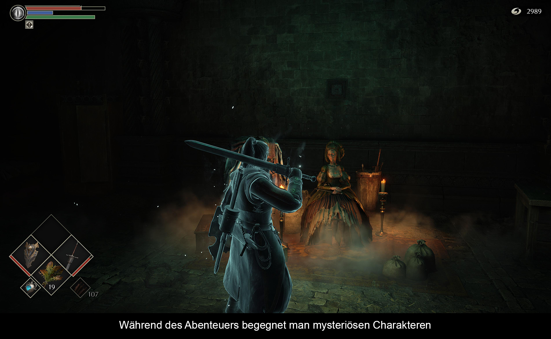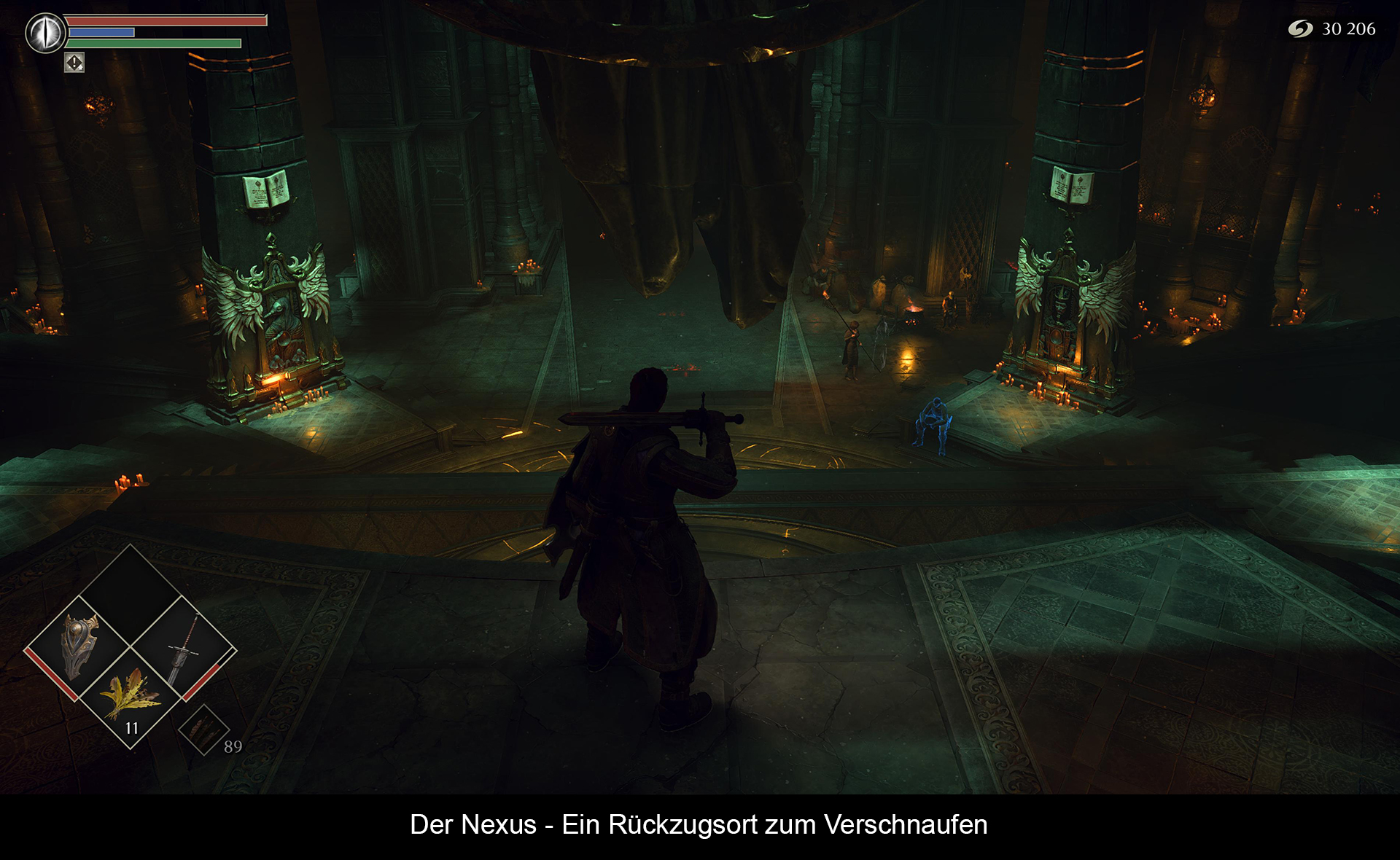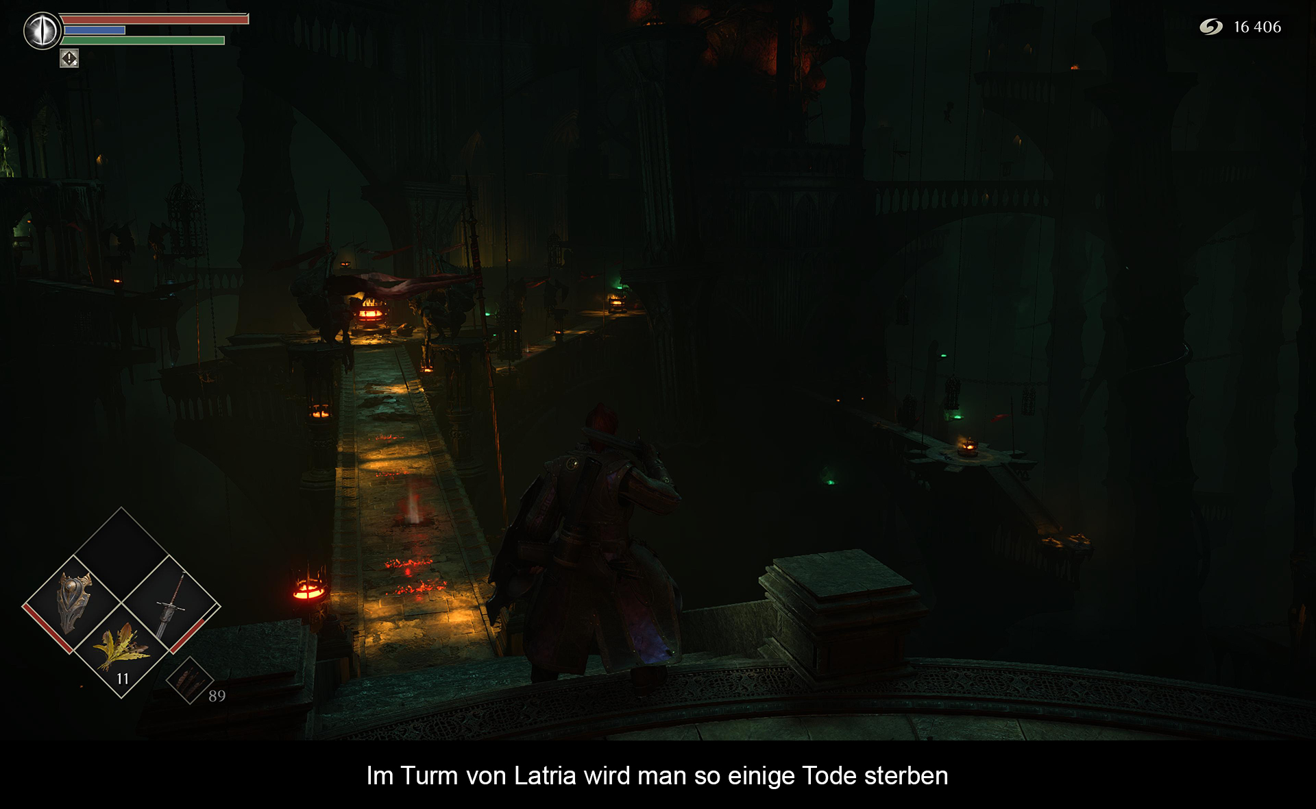 Während alles andere im Spiel absolut den Nagel auf den Kopf trifft, ist das HUD (Lebensanzeige, Waffenslots und so weiter) nicht sonderlich gelungen. Um nicht zu sagen, das es mir immer wieder sauer aufstößt. Ein in meinen Augen Sci-Fi HUD hier einzubauen, ist für ein Spiel wo es Drachen und Burgen gibt einfach nicht...sinnvoll. Zwei Jahre zuvor hatte ich das schon bei God of War auf der PlayStation 4. Auch dort haben die Entwickler es nicht geschafft, ein passendes und gleichzeitig stimmungsvolles HUD hin zu bekommen. Die Frage stellt sich schon, warum ausgerechnet dort so geschlampt wurde. Zu mal das Original im Jahre 2009 eines ja hatte, was absolut stimmig und perfekt war. Vielleicht ist es auch schon ein Meckern auf hohem Niveau, aber wenn der Rest des Spiels so gut abliefert ist es eben umso ärgerlich, das man es hier vergeigt hat.