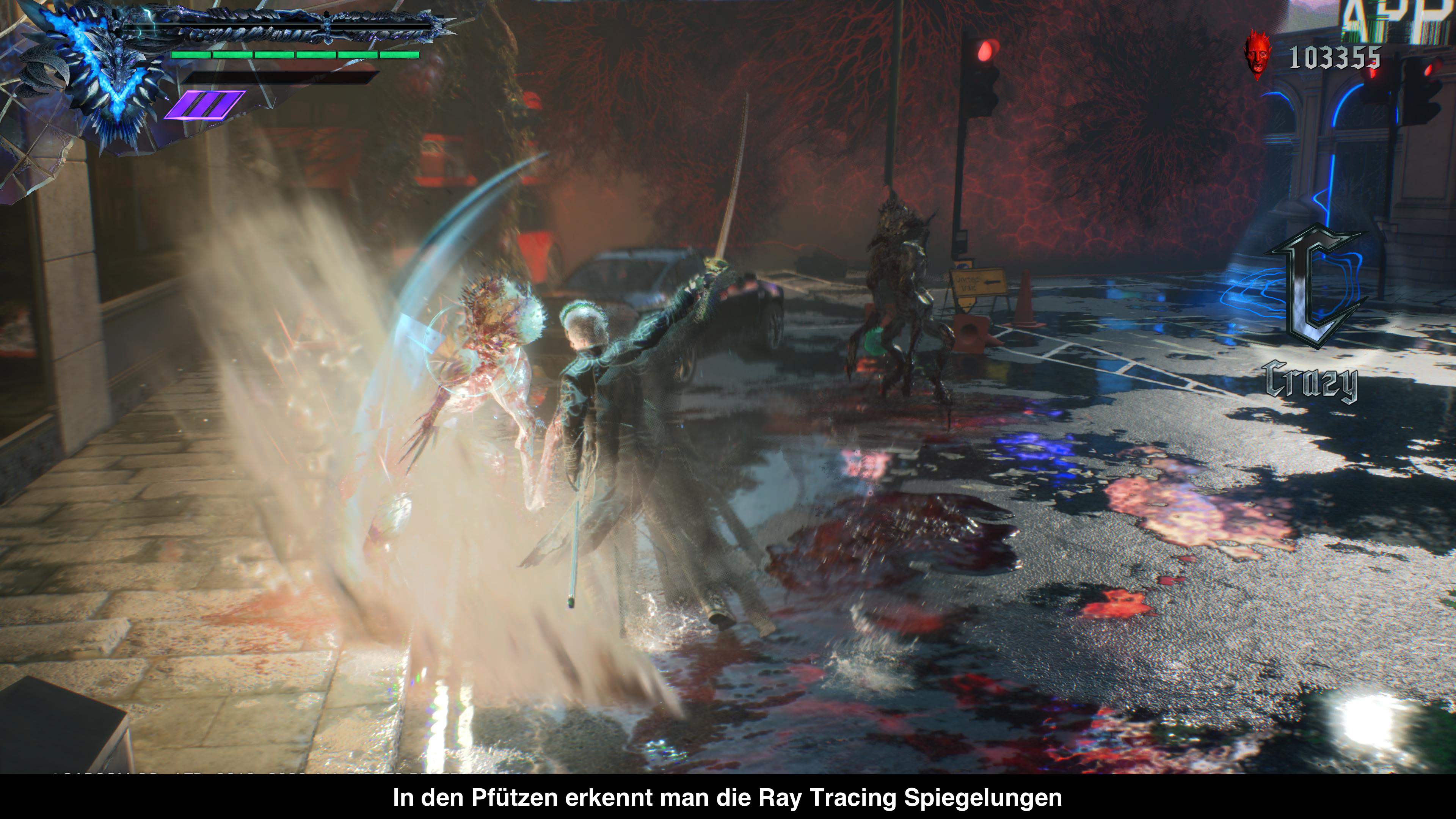 Natürlich profitiert das Spiel vom technologischen Fortschritt der PlayStation 5 und bietet außerordentlich viele Möglichkeiten. Fangen wir mit Ray Tracing an, was vom Spiel unterstützt wird. Hier habt ihr die Wahl zwischen einem Modus der in 4k Auflösung bei 30 Bildern pro Sekunde läuft und einem anderen Modus der mit 1080p und 60 Bildern pro Sekunde läuft. Liegt euer Augenmerk auf den besten Kombos und höheren Schwierigkeitsgraden, stellt sich die Frage eigentlich nicht und ihr solltet den zweiten Modus wählen, falls ihr Ray Tracing sehen möchtet. Jedoch leidet die Bildqualität merklich unter der geringen Auflösung. Das Problem wird im ersten Modus gelöst, aber dafür leidet die Spielbarkeit merklich. Zudem profitiert das Spiel nicht besonders durch Ray Tracing, da spiegelnde Oberflächen eher selten vorkommen. Wer deshalb auf Ray Tracing verzichten kann, kann das Spiel sogar in 4k mit 60 Bildern pro Sekunde spielen. Den Abschluss macht nun der 120FPS Modus. Wer über einen entsprechenden TV mit HDMI 2.1 Schnittstelle verfügt, kann das Spiel nämlich in 1080p mit 120 Bildern pro Sekunde spielen. Dies wirkt sich nochmals positiv auf die Spielbarkeit aus. Leider sind die 120 Bilder pro Sekunde nicht ganz stabil und da die PlayStation 5 noch kein VRR unterstützt, kommt es zu unschönen Rucklern. Dafür laufen die anderen Grafikmodi alle sehr stabil und für jeden Geschmack ist etwas dabei.
