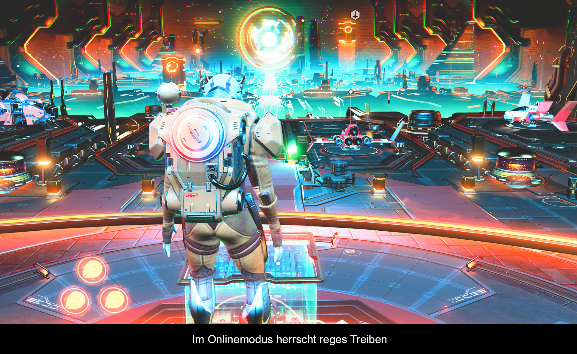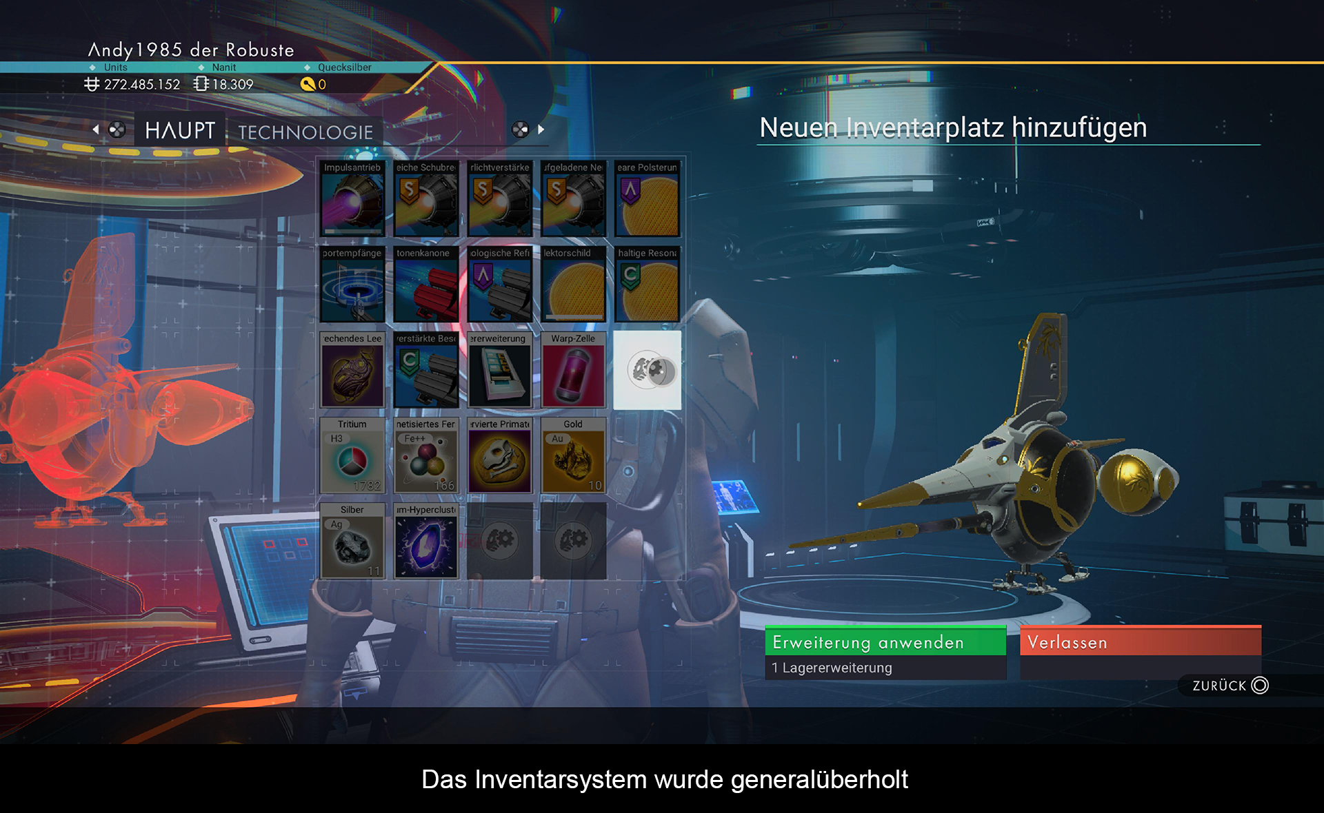 Das zweite radikale Update umfasst die Runderneuerung des Mehrspielermodus. Es ist nun möglich, zu viert das Universum zu erkunden und Strukturen von anderen Mitspielern zu finden und zu besuchen. Hierfür wurde eine neue, einzigartige Raumstation erschaffen, die „Raum Anomalie“ (ja heißt wirklich so). Veteranen der ersten Stunde werden hier nicht nur auf Bekannte aus Version 1.0 treffen, sondern auch auf weitere zahlreiche Mitspieler. Über den zentralen Nexus ist es möglich, gemeinsame Missionen zu starten, die etwas mehr Zusammenarbeit erfordern. Ebenso können hier Materialen ausgetauscht werden. Handel mit Raumschiffen ist jedoch noch nicht möglich. Ebenfalls findet man hier den komplett überarbeiteten Technologiebaum. Mit gefundenen Modulen lassen sich hier weitere Gegenstände für den Basisbau und die Industrie freischalten. Beides sind zwei weitere neue Kernelemente des Spiels.