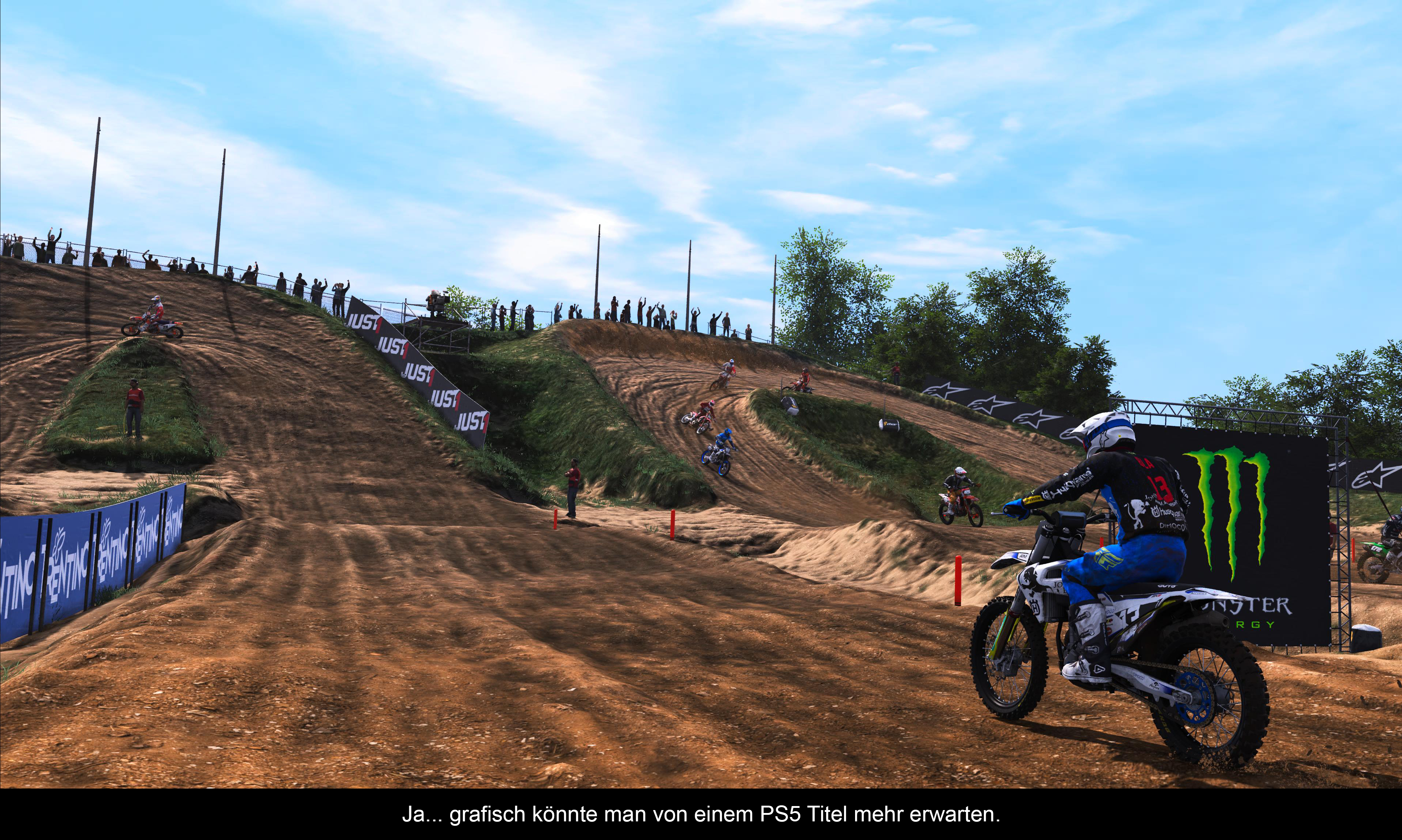 Grafisch habe ich mit mit der Veröffentlichung auf der PS5 einen großen Sprung nach vorne erwartet. Leider konnte das Ergebnis meinen Erwartungen jedoch nicht standhalten. Während das Spiel zwar solide mit 60 fps läuft und auch HDR-Support bietet, überkam mich zu keiner Zeit das Gefühl, dass ich es hier einen echten Generationssprung sehe. Zwar sind Bikes und Fahrer gut animiert, aber was die Strecken angeht, erwartet den Spieler viel Standardkost. Ich hätte mir hier ein Stück mehr Liebe zum Detail erhofft, wobei das vielleicht zu viel verlangt ist, angesichts der Tatsache, dass das Team – wie viele andere Studios - im vergangenen Jahr wohl ordentlich mit Corona zu tun hatte, und wahrscheinlich ohnehin nicht das größte Budget besaßen. Dies zeigt sich unter anderem auch in den Ladezeiten, die nicht besonders schnell wirken, und wohl nur bedingt von Sonys neuer und superschneller PS5 Festplatte Gebrauch machen. In Sachen Sound überzeugen lediglich die guten Motocross-Sounds. Der Soundtrack hingegen ist belanglos und kaum der Rede wert.