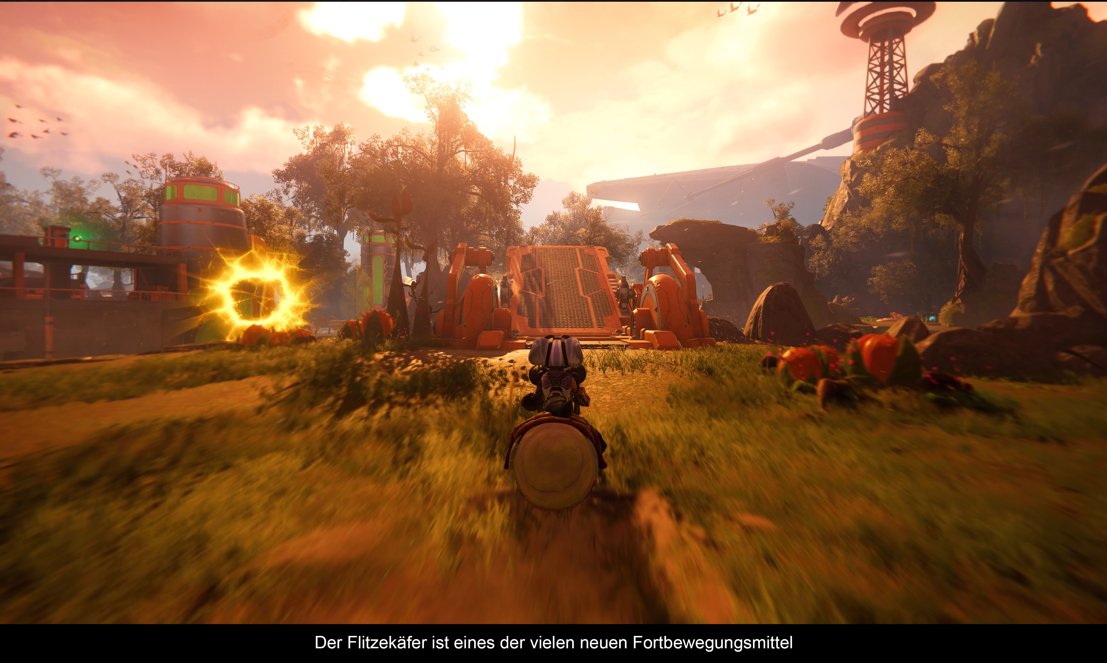 Seit dem ersten PS3 Ableger hat diese Serie den Ruf, wie ein spielbarer Animationsfilm zu sein und der neueste Teil bekräftigt diese Aussage ebenfalls. Die PS5 erlaubt es zudem, aus verschiedenen Grafikmodi zu wählen. Deshalb kann man sein Spielerlebnis ganz an seine Vorlieben anpassen (für alles in einem Modus ist jedoch auch die PS5 zu schwach). So steht ein 4K 30fps Modus mit aktiven Raytracing zur Verfügung, aber auch ein 4K 60fps Modus, ohne Raytracing. Den Mittelweg bietet ein Modus mit 60fps, aber nur 1080p Auflösung, dafür aber mit aktiviertem Raytracing. Via Update kam noch ein 120hz Modus dazu, der mit 1080p, 40fps und minimalem Raytracing läuft. Die 40fps sind deshalb gewählt, weil es ein Drittel der möglichen Bildwiederholrate ist und äußerst flüssig läuft – zumindest in der Wahrnehmung flüssiger als 30fps. Was hier aus der Konsole herausgeholt wurde, schreit regelrecht nach Next-Gen Feeling. Die Spielewelt wirkt lebhaft und lädt an vielen Stellen zum Staunen ein. Selbst bei hektischen Gefechten mit jeder Menge bombastischen Effekten geht die Framerate nicht in die Knie. Das Beste sind jedoch die Ladezeiten, die praktisch nicht vorhanden sind. Das Spiel wechselt flüssig von Gameplay zu vorgerenderter Szene. Auch bei einem Spieletot ist man nach einer Sekunde gleich wieder am Start. Es ist schon beeindruckend, in wieweit eine schnelle Festplatte (SSD) das Spielgeschehen beeinflussen kann. Auch sollte man die unzähligen, liebevollen, Details der Figuren loben. Wer im Fotomodus an die Helden heranzoomt kann sogar feine Fellhärchen erkennen. Generell wurde sehr viel Zeit in die Animation der Figuren investiert. Statt auf Motion Capturing zu setzen, wurden alle Figuren per Hand animiert. Was sie im Endeffekt noch eine Spur lebendiger erscheinen lässt. Auch die Synchronisation ist auf relativ hohem Niveau und musikalisch gibt es auch kaum was zu kritisieren. Naja, vielleicht nur das entfallene Video der Musical Nummer! Bleibt nur noch die Einbindung des neuen DualSense Controllers zu erwähnen, denn auch das wurde durchdacht integriert. Ähnlich wie bei „Returnal“ werden die unterschiedlichen Waffenmodi mit den Triggern ausgelöst. Leicht Draufdrücken für einen Einzelschuss und Durchziehen für Dauerfeuer bzw. je nach Waffe unterscheiden sich die Funktionen. Wer sich bislang fragte, wie weit man das haptischen Feedback ausnutzen kann, sollte beim zweiten Durchgang den Pixelator mal genauer beobachten.