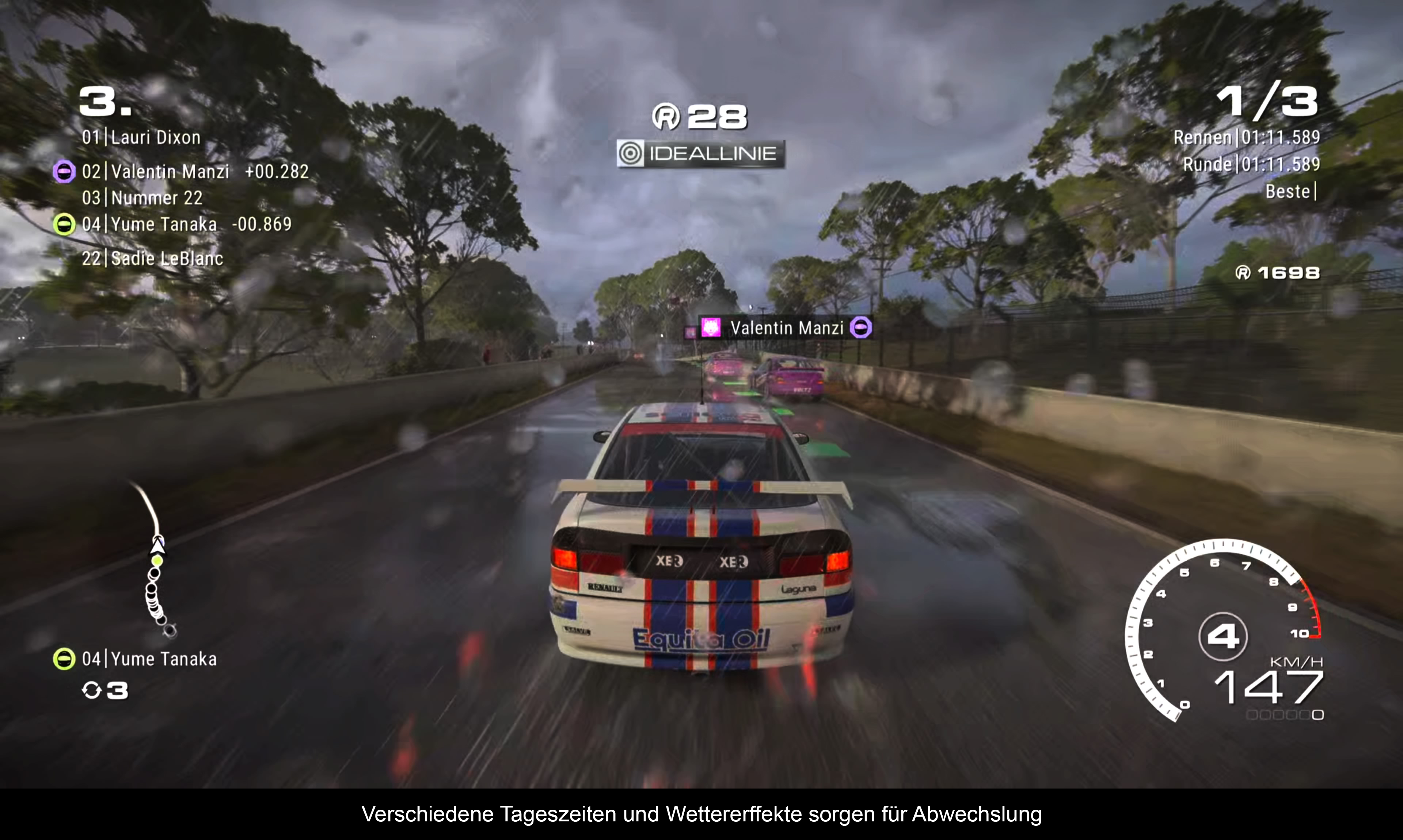 Wenn ich jetzt für mich die vielen Events bewerten würde, käme der gelungene Driftmodus (wo man über mehrere Runden versuchen muss, durch Drifts einen Punktemultiplikator zu erhöhen) an erster Stelle! Als Nächstes stünden für mich die Zeitangriffs-Events. Hier darf man Rundenrekorde brechen, aber andere Fahrer sind ebenfalls auf der Strecke. Spannende Überholmanöver sind dabei an der Tagesordnung. Eliminierungsrennen machen auch Laune. Wenig ansprechend fand ich die Stadium-Trucks, vor allem da die schaukligen Hitschen eher Seekrankheit erzeugen, als Spaß versprühen. Multi-Class Rennen sind da schon eher ein Hingucker! Mit einem Open Wheel Flitzer riesige Renntrucks zu überholen, ist definitiv cool. Insgesamt wird also eine ordentliche Mischung geboten, die durch klassische Autos und legendäre Sportwagen noch an zusätzlicher Würze gewinnt.