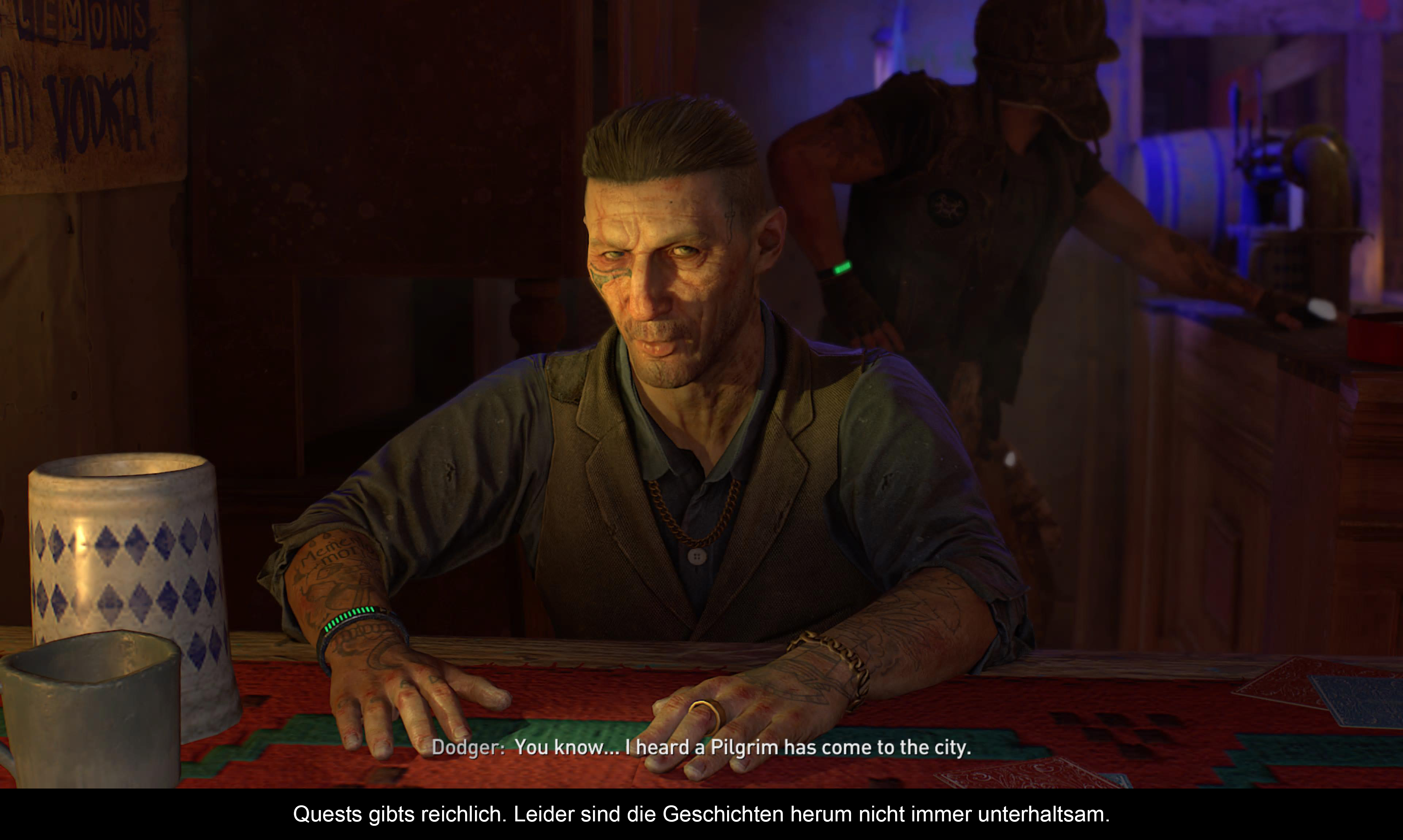 Dennoch muss ich zugeben, dass die all umfassende Story rund um Aiden nie über durchschnittliches TV-Serien-Niveau hinausschoss. Egal, ob es um die sozialen Konflikte innerhalb der verschiedenen Gruppierungen geht, oder um Aidens persönliche Rache an einem verrückten Doktor - all dies sind bekannte Geschichten, die man schon öfters in verschiedenen Medien gesehen hat. Selbst die größten Eskalationsmomente haben mich oftmals relativ kalt gelassen. Und umso länger ich Dying Light 2 gespielt habe, desto mehr habe ich mich auch beim Wegklicken der Dialoge ertappt - insbesondere bei den Sidequests, die inhaltlich nur wenig zu bieten hatten. Ich hätte mir an dieser Stelle einfach mehr Kreativität gewünscht - ein wenig Mut zu etwas Neuem. Etwas, was man vorher noch nicht gesehen hat.