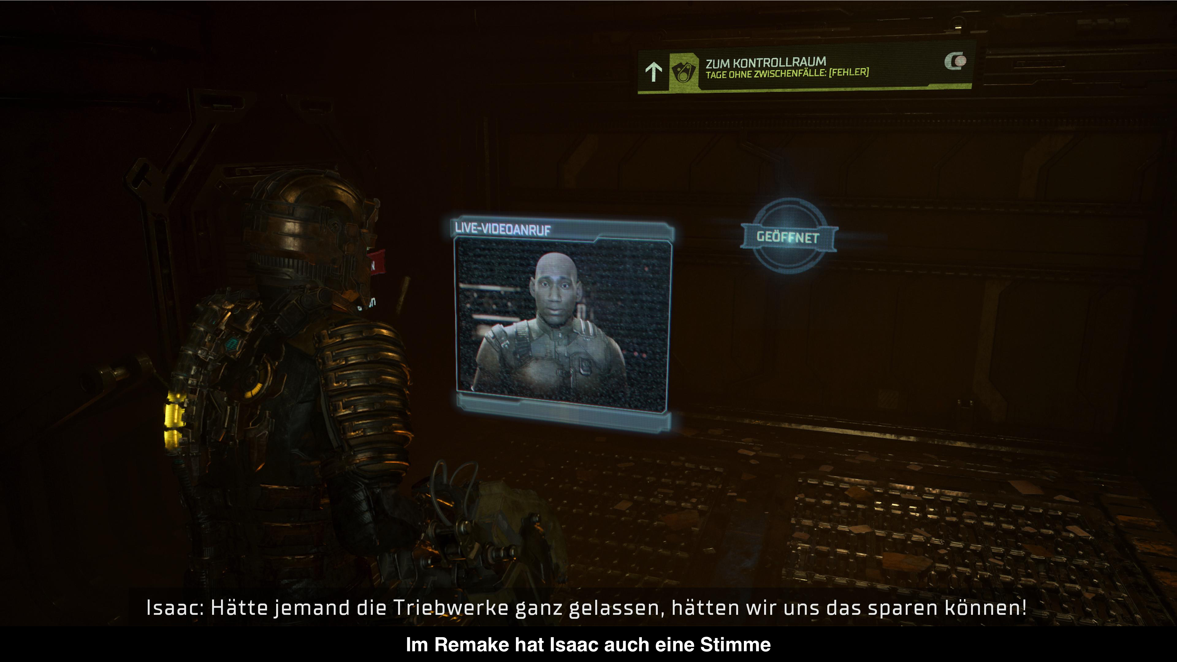 Das Kampfsystem im Remake ist im Vergleich zum Vorgänger quasi unverändert geblieben. Dadurch gibt es weiterhin großen Fokus darauf, den Gegnern Gliedmaße abzutrennen, um sie so zu verlangsamen und letztlich auch auszuschalten. Um dies zu schaffen, darf man auf ein großes und kreatives Arsenal an Waffen zurückgreifen, die allesamt auch im Original vorkommen. Für Kenner des Originals muss sich aber keine Langeweile einstellen, denn man hat ein paar Anpassungen vorgenommen. In erster Linie wurde das Schiff umdesignt. So sind manche Wege leicht anders als im Original und gewisse Dinge passieren mal eher, mal später als damals. Insgesamt wirkt das Leveldesign der Ishimura etwas sinniger und man hat nicht das Gefühl, dass gewisse Designentscheidungen nur dank der damals verfügbaren Technologie getroffen werden. Die zweite Änderung betrifft die Szenen in der Schwerelosigkeit. Im Original musste man sich von Wand zu Wand abstoßen, um Hindernissen auszuweichen. Im Remake kann man sich nun völlig frei in der Schwerelosigkeit bewegen, was erstmal positiv klingt. In manchen Sektionen verliert man aber auch leicht den Überblick, weil nicht ganz ersichtlich ist wo nun noch oben oder unten ist.