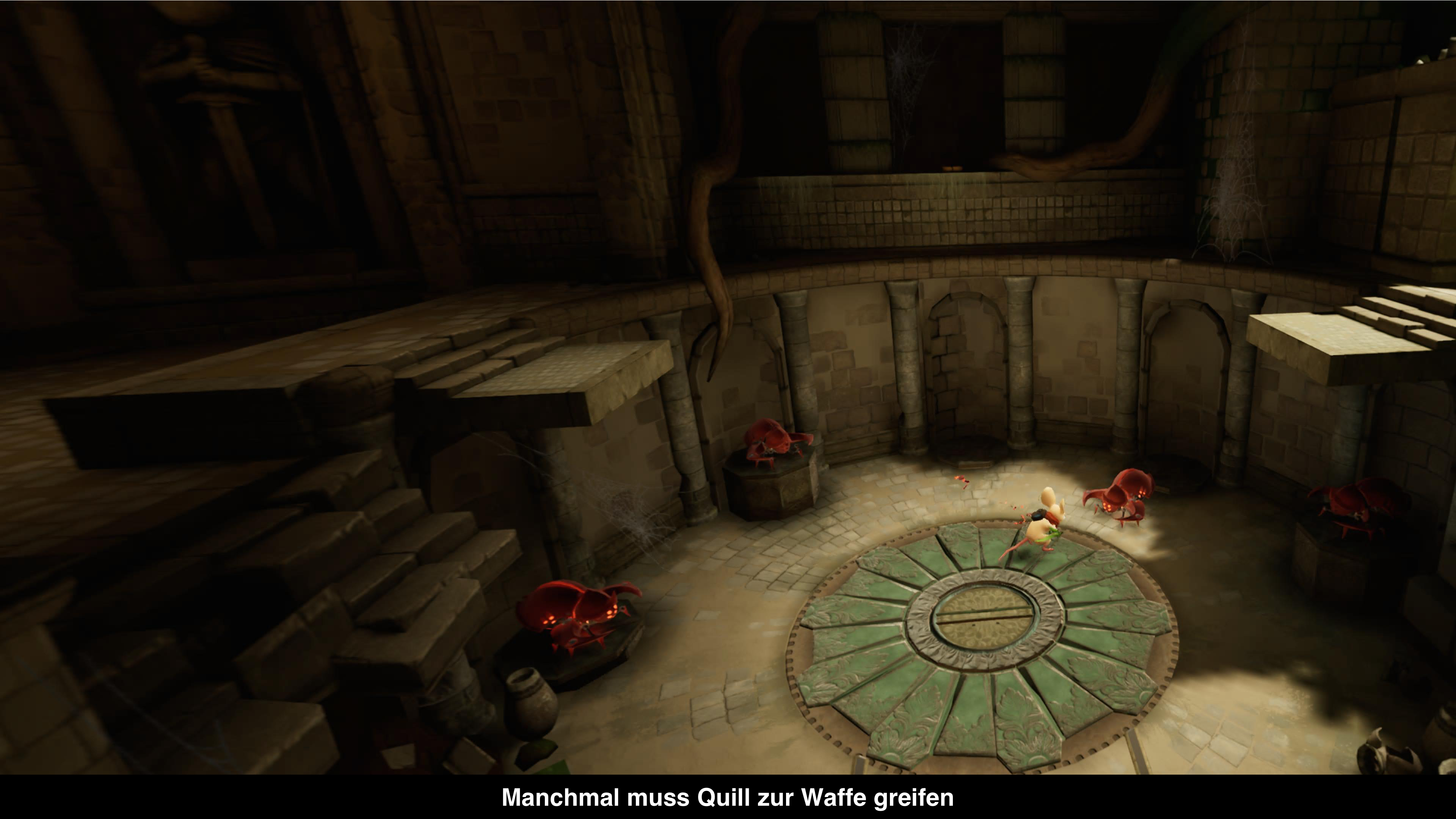 Während die meisten VR-Spiele grafisch recht rudimentär daherkommen, ist Moss schon deutlich anspruchsvoller. Quill ist zwar eine relativ simple Maus, aber die vielen verschiedenen Animationen hauchen ihr Leben ein und sehen toll aus. Die Umgebungen sehen auch gut aus und bieten ausreichend viele Details. Hervorzuheben ist auch die tolle deutsche Synchronisation, wodurch man sich wirklich wie in einer Märchenstunde fühlt.
