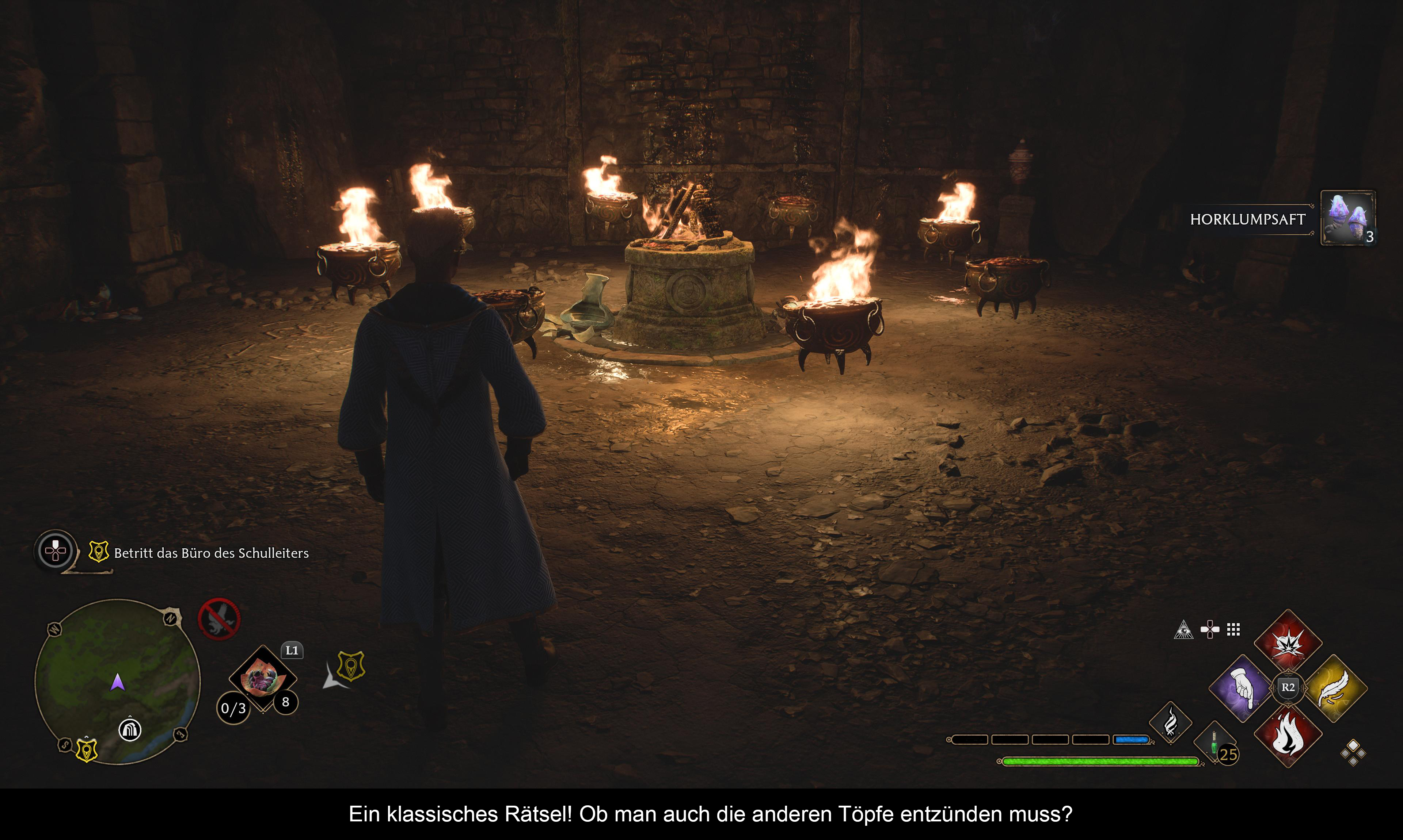 Ein weiterer Aspekt ist, das man zwar Teil von Hogwarts ist, aber nicht unbedingt das Gefühl hat, auch Teil des Schulalltags zu sein. Bis auf ein paar Schulstunden gibt es keine besonderen Schulaktivitäten, keine Feste, nicht mal irgendwelchen Quatsch mit den Schulkollegen im Schlafsaal oder dergleichen. Da wäre viel mehr möglich gewesen. Während der Interaktion mit den Schülern, fallen weitere Probleme auf. Zum Beispiel gäbe es da die grauenhafte deutsche Synchronisation, die für eine AAA-Produktion dieser Größe nicht mehr zeitgemäß ist. Aber auch die Animationen während der Gespräche erinnern eher an Oblivion aus der PS3/360-Generation als an ein PlayStation 5 Spiel. Alles wirkt sehr hölzern und so will keine Stimmung aufkommen.
