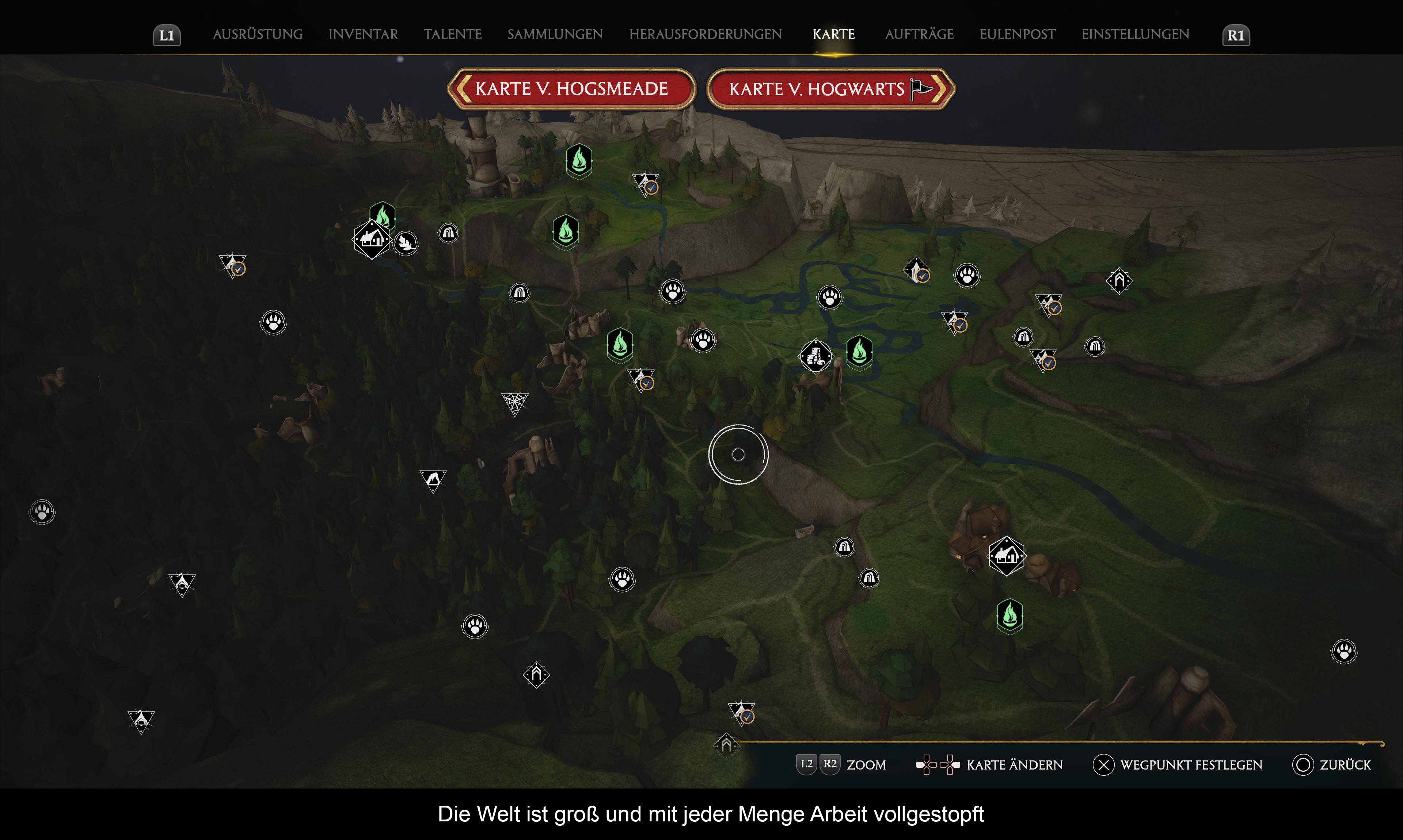 Rund um Hogwarts gibt es viele kleine Ortschaften zu entdecken, wobei hier Hogsmeade deutlich hervorsticht. Dies ist der zweite zentrale Hub des Spiels, wo zahlreiche Questgeber warten und ihr Ausrüstung kaufen könnt. Doch man sollte auch den anderen Läden hin und wieder einen Besuch abstatten. So hat sich hier das Süßigkeiten Geschäft Honigtopf und der Scherzartikelladen Zonkos angesiedelt. Zwar kann man hier nichts kaufen, die Läden überraschen aber mit zahlreichen interaktiven Elementen. Neben Hogsmeade wartet auch noch der verbotene Wald mit zahlreichen gefährlichen Gegnern auf, sowie herumstreunenden Zentauren! Wer die Lande noch weiter erkundet, wird zahlreiche kleinere Siedlungen und Burgen entdecken. Dort kann man, ähnlich wie im Schloss, verschiedene Handbuchseiten finden, welche interessante Zusatzinformationen liefen. Dank dem Flohnetzwerk darf man auch schnell und unkompliziert zu all den entdeckten Orten reisen. Zu einem späteren Zeitpunkt geratet ihr noch in den Besitz eines Besens und eines Reittiers, welche die Erkundungsreisen nochmals spannender gestalten.