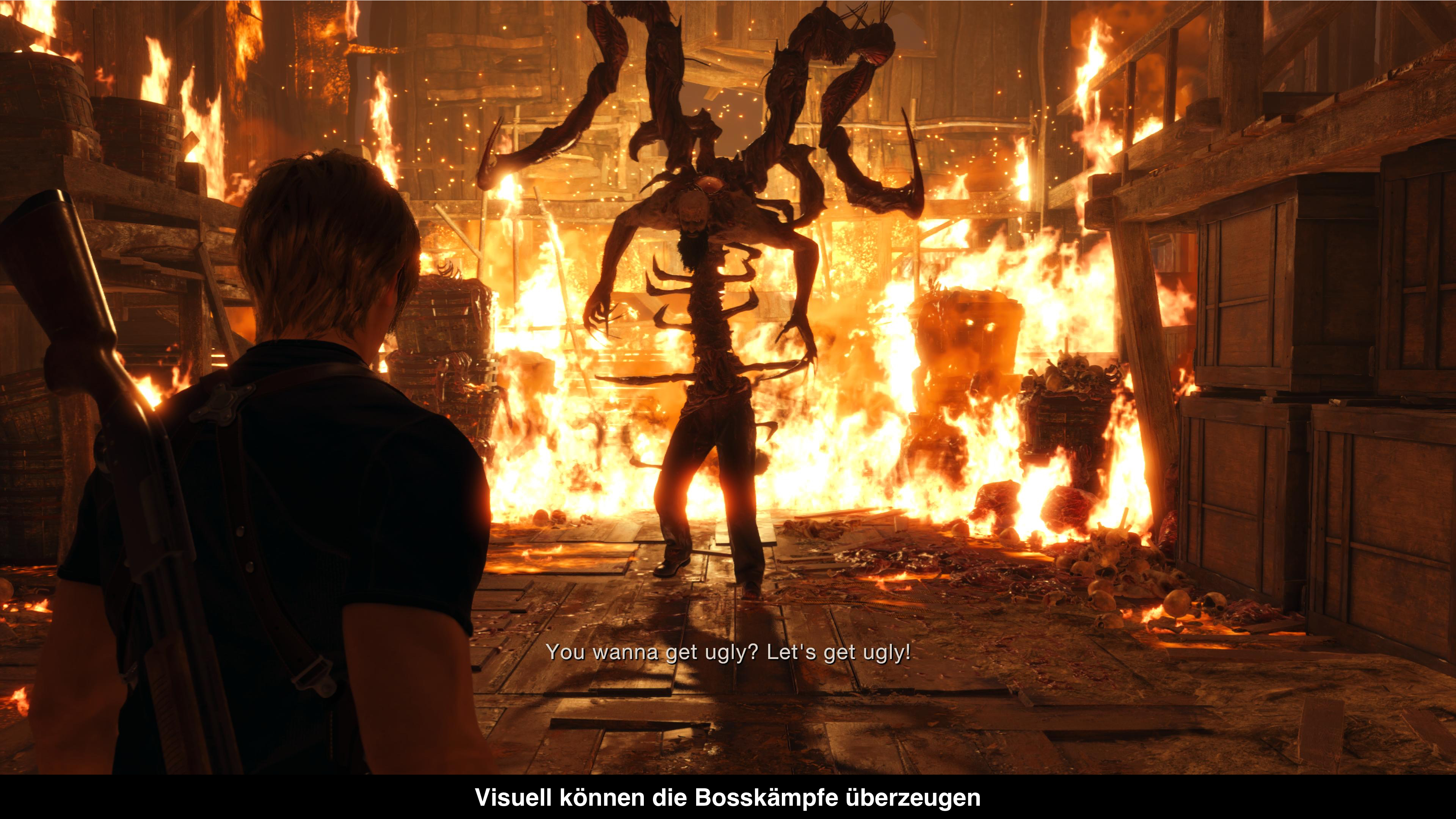 Ein Alleinstellungsmerkmal des Originals war die Tatsache, dass man sich beim Zielen nicht weiter bewegen konnte. Was 2005 noch in Ordnung war, ist heute völlig veraltet und glücklicherweise hat Capcom das angepasst. Nun kann man sich also beim Zielen auch endlich weiterbewegen, was etwas flexibler ist. Das macht das Spiel aber nicht unbedingt leichter. Natürlich hat Capcom die Gegner und ihre Bewegungen angepasst und insbesondere in der ersten Hälfte des Spiels ist das Spiel durchaus herausfordernd. Viel mehr noch als zum Beispiel das aktuelle Resident Evil: Village. Das liegt zum Teil auch daran, dass man es mit wirklich vielen Gegnern zu tun bekommt und man oft in Bewegung bleiben muss, um sich nicht überwältigen zu lassen. Das kann manchmal etwas chaotisch wirken. Ähnlich chaotisch sind manche der Bossgegner, die zwar visuell interessant sind, aber spielerisch nicht immer mithalten können. Ansonsten hat man sich aber stark am Original orientiert und nur punktuell Änderungen vorgenommen. Wer das Original kennt, dürfte sich in manchen Orten direkt wieder wie Zuhause fühlen.