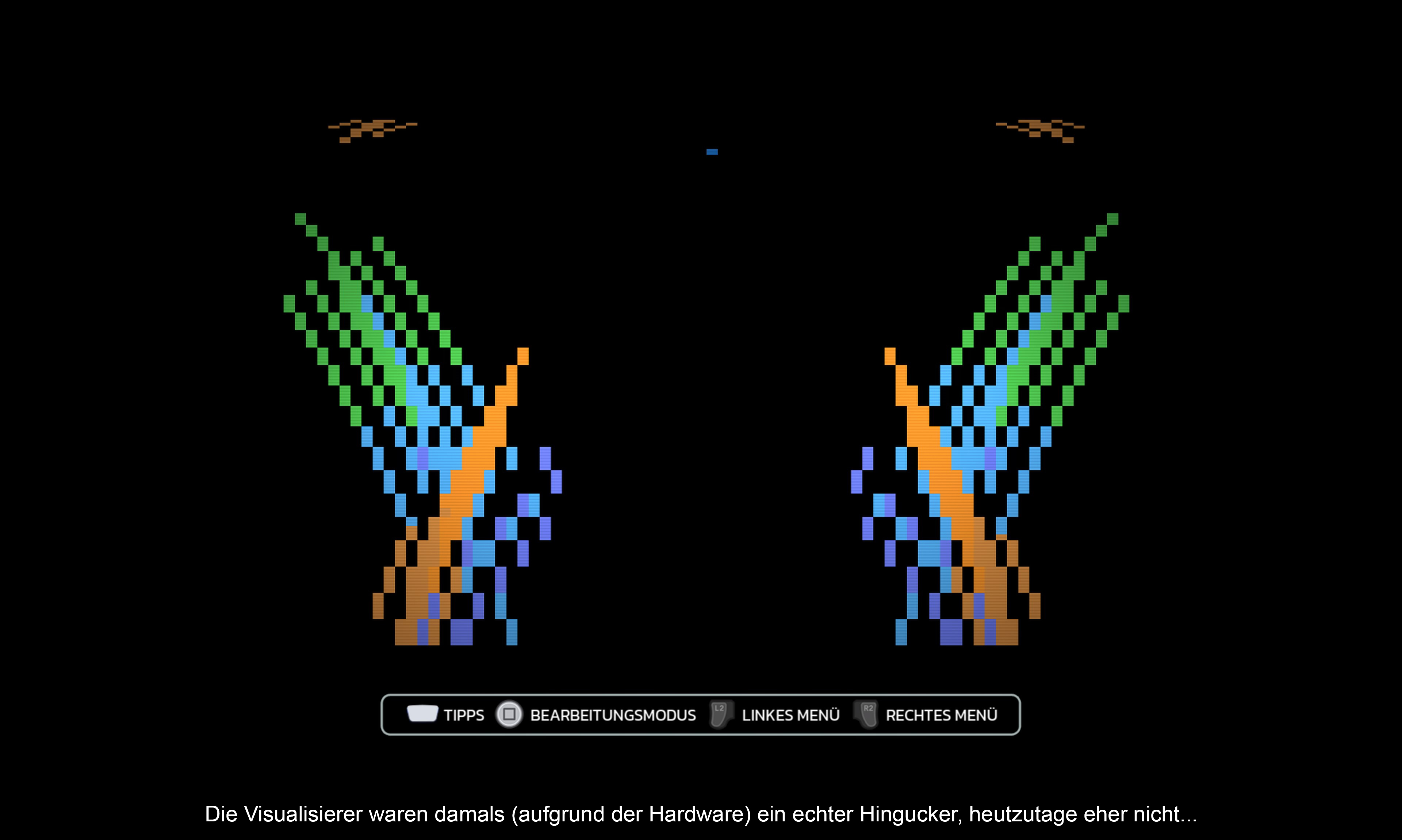 Auch hier vergeben wir keine Wertung, weil ich das Ganze nicht als reguläres Spiel (oder gar schnöde Klassiker-Sammlung) sehe, sondern als gut recherchiertes Zeitdokument. Die Video-Interviews wirken nun ein ganzes Stück professioneller produziert, das begleitende Text- und Bildmaterial fällt umfangreich aus und die Benutzeroberfläche ist einfach und stylisch zu gleich. Auch gibt es viele Spiele zum Ausprobieren, wobei die ganzen alten Sachen wohl nur Menschen vor dem Ofen hervorlocken, die diese damals auch hautnah erlebt haben. Mir fehlen schlichtweg die neueren Sachen und dementsprechend bin ich von „Llamasoft: The Jeff Minter Story“ nicht komplett überzeugt.