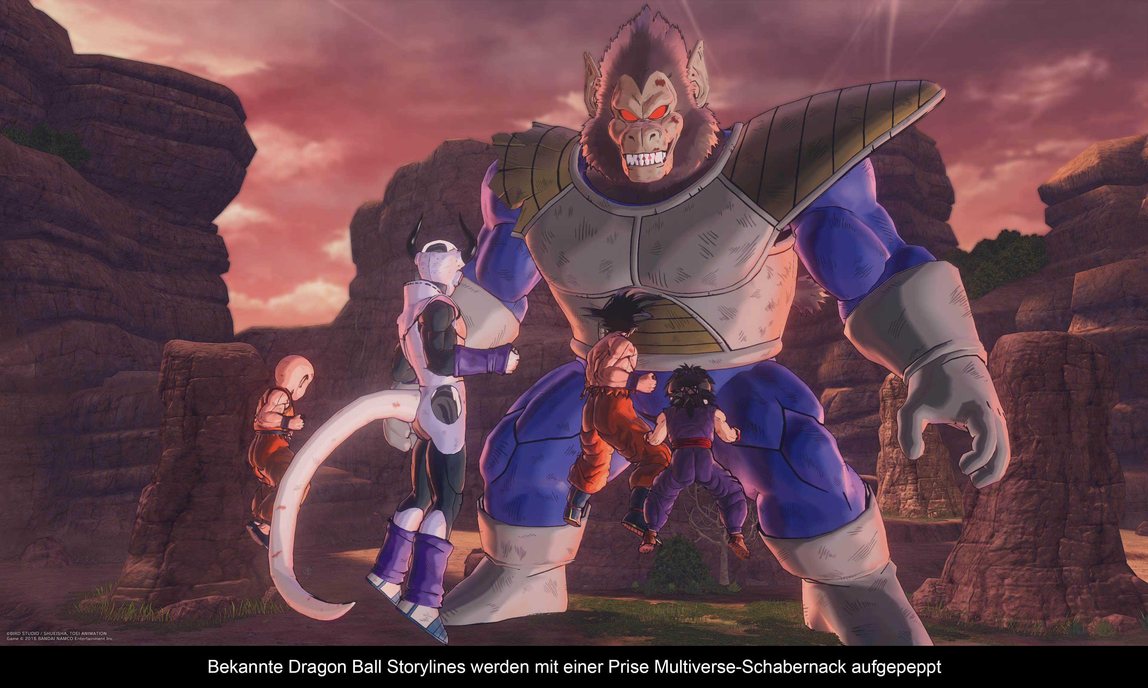 Im Gegensatz zu vielen anderen Dragon Ball-Spielen, wo man oftmals in die Rolle von Goku, Vegeta, Krillin und Co. schlüpft, beginnt Xenoverse 2 mit einem umfangreichen Kreations-Modus, wo ihr euch auf Basis der zahlreichen Rassen aus dem DB-Universum einen eigenen Charakter zusammenstellen könnt. Und genau dieser Protagonist steht im Anschluss auch im Mittelpunkt des Singleplayer-Modus. Als neues Mitglied der Zeitpatrouille lautet eure Aufgabe nämlich, die Zeitlinie der gesamten Dragon Ball Saga auf Kurs zu halten und sämtliche Veränderungen und Gefahren zu eliminieren. Allerdings wird man schnell feststellen, dass dies kein leichtes Unterfangen sein wird, da mit Mira und Towa ein paar Serien-bekannte Bösewichter zurückgekehrt sind, um die Zeitlinie komplett aus den Fugen zu reißen. Die Kampagne führt euch im Anschluss durch zahlreiche Quests, wo man viele bekannte Momente der DB-Saga nachspielen darf – zum Beispiel die Ankunft der Saiyajins auf der Erde oder Cells Kampf gegen die Z-Krieger. Das Interessante an der Story von Xenosaga 2 ist allerdings die Tatsache, dass sie sich aufgrund des Eingreifens in die ursprüngliche Zeitlinie leicht vom Original unterscheidet und euch vor neue, gefährliche Herausforderungen stellt. Darüber hinaus dient der Story-Modus auch dazu, sich Schritt für Schritt an das Gameplay von Xenoverse 2 zu gewöhnen.