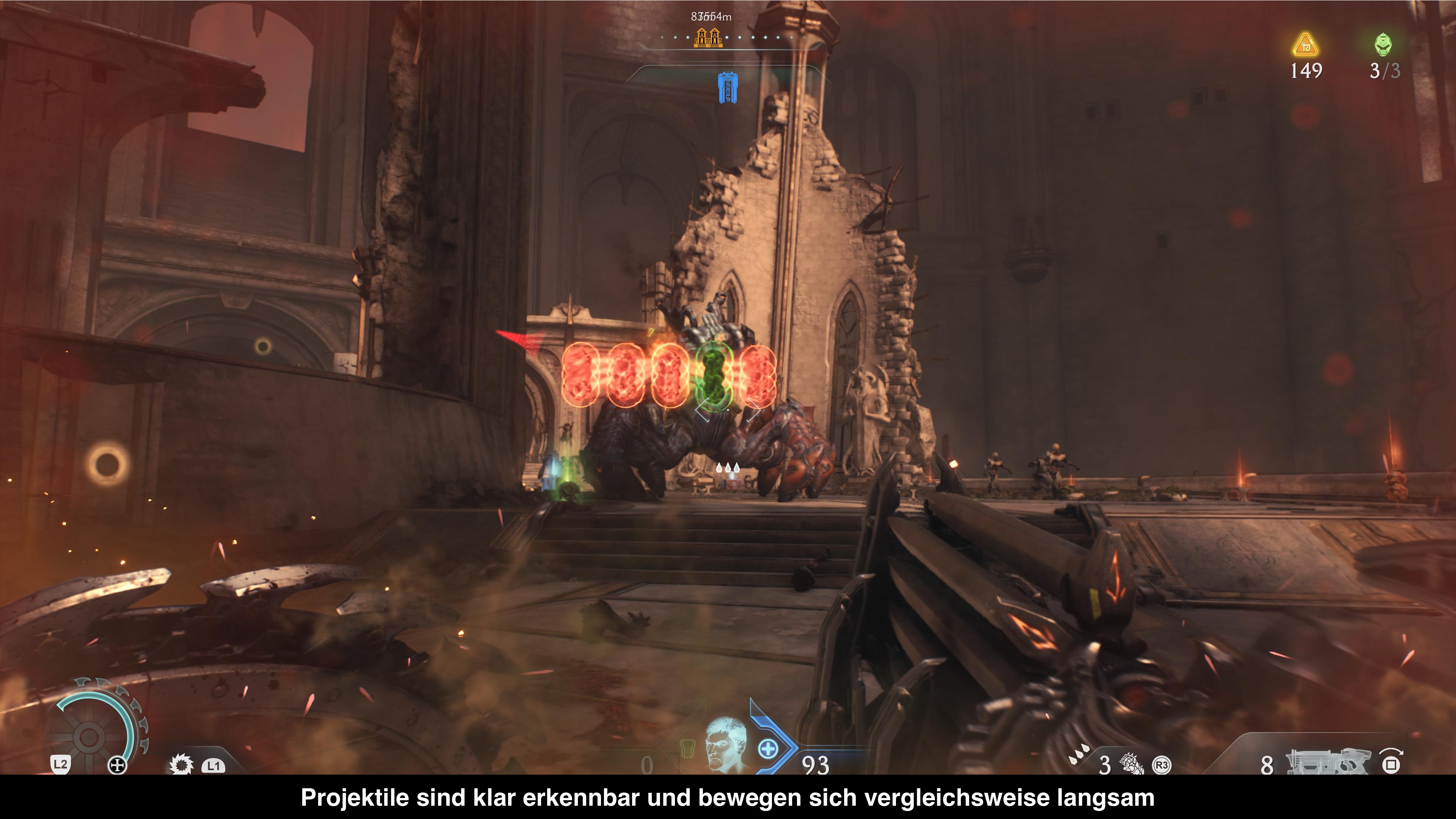 Die Welt von Doom: The Dark Ages ist eine verrückte Mischung aus Sci-Fi und Mittelalter. Ihr verbringt lange Teile des Spiels in gewaltigen Festungen mit beeindruckenden Monumenten, trifft aber gleichzeitig auf Dämonen und Sci-Fi-Kämpfer, die aus Halo stammen könnten. Grafisch wird einiges geboten: Die Areale sind detailliert modelliert, die Beleuchtung ist stimmig, und die Gegner stechen mit ihren mittelalterlichen Rüstungen hervor. Auf der PlayStation 5 Pro läuft das Spiel stabil mit 60 FPS bei 4K-Auflösung. Andere Grafikoptionen sind nicht verfügbar, aber auch nicht notwendig.