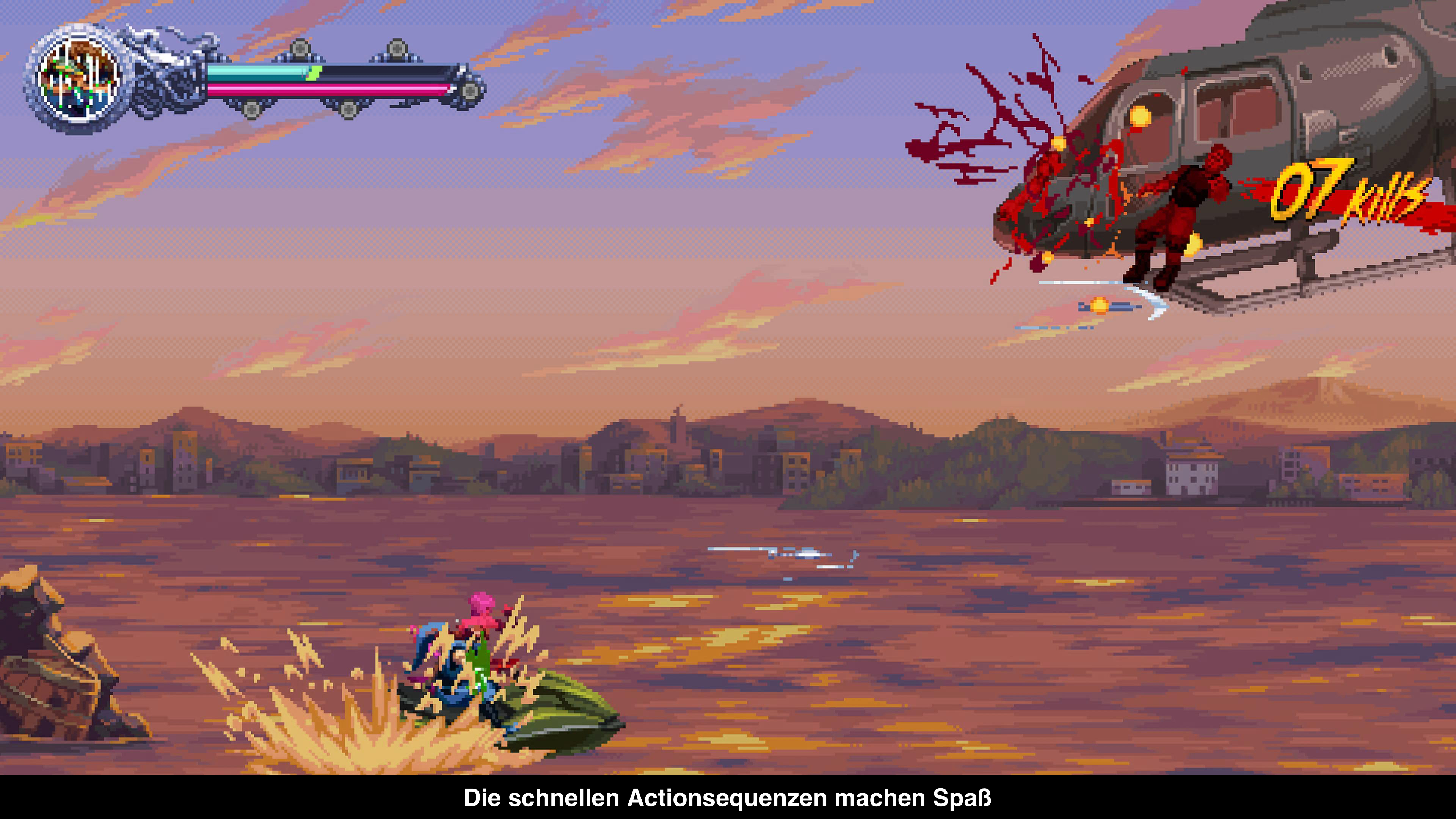 Ähnlich wie Blasphemous besticht Ninja Gaiden Ragebound durch einen pixeligen 2D-Stil. Obwohl die Charaktere an sich eher gering aufgelöst sind, ist alles gut erkennbar und vor allem die Umgebungen sind abwechslungsreich gestaltet und bieten genug Details. Es mangelt auch nicht an Gegnertypen und fast jedes Level bietet was Neues. Natürlich läuft das alles problemlos mit 60 Bildern pro Sekunde und angetrieben wird man von einem tollen Soundtrack. Der bietet Musik im Stile von SNES-Spielen, aber mit viel mehr Facetten. Es gibt schnelle Gitarrensongs, klassisch angehauchte Melodien und mehr. Jede Situation wird gekonnt unterstützt.