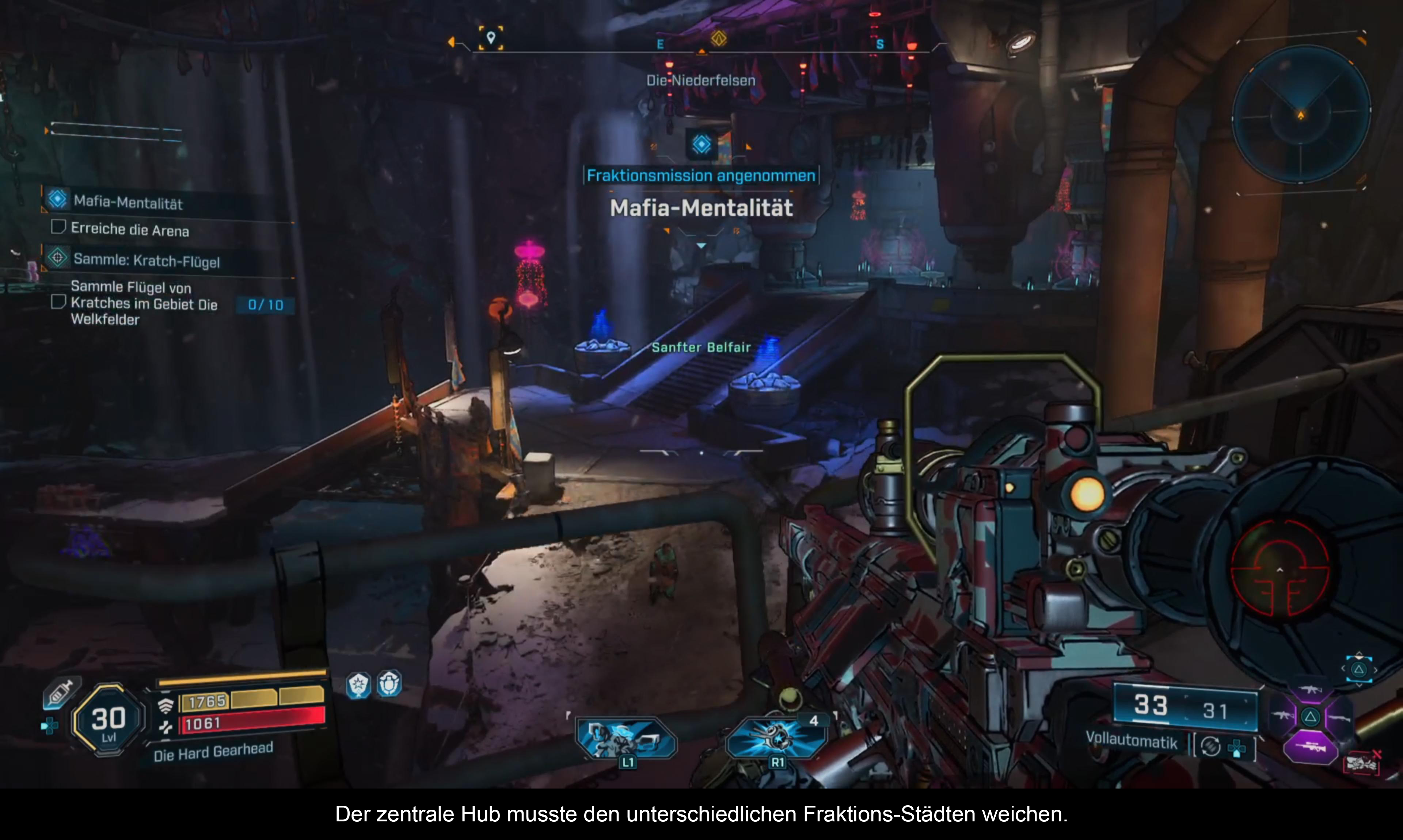 Wie bereits erwähnt, setzt Borderlands nun auf eine semi-offene Welt. Die vier verschiedenen Gebiete sind optisch gut voneinander getrennt und sorgen für Abwechslung. Der einzige Wermutstropfen ist, dass es keinen zentralen Hub mehr gibt. Diese Funktion übernehmen nun die Fraktionsstädte. Außerdem wurden die Schnellreise-Orte deutlich reduziert und es wird versucht, die Spieler gezielt von einem Ort zum nächsten zu leiten. Dank der neuen Bewegungsmöglichkeiten ist dies jedoch unterhaltsam. Neue Schnellreisepunkte werden freigespielt, wenn man Raketen-Silos einnimmt. Damit wären wir auch bei der berüchtigten Ubisoft-Formel. Die gesamte Karte ist nicht nur mit Nebenquests, sondern auch mit To-dos vollgestopft. Es gibt Bunker, die geräumt werden müssen, Propaganda-Lautsprecher, die deaktiviert werden wollen, und einige Sammelgegenstände.