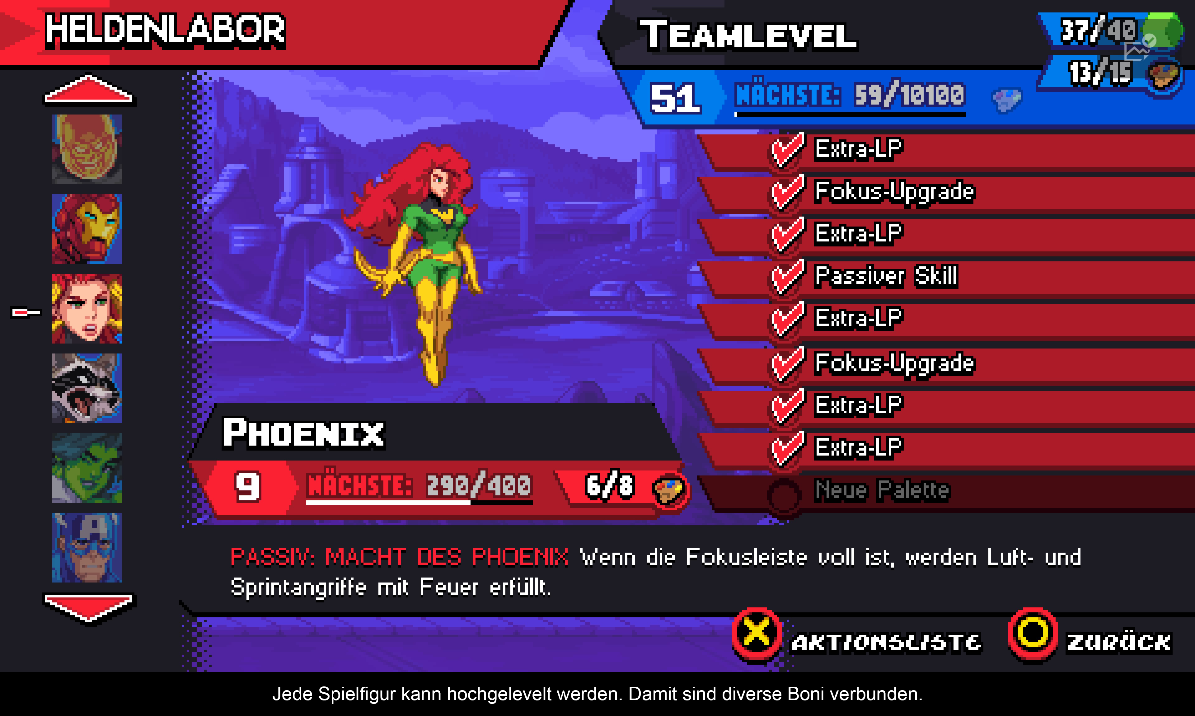 „Marvel Cosmic Invasion“ sieht dufte aus und macht auch Spaß – zumindest für einige Stunden. Dann ist jedoch die Luft raus. Das Kampfsystem bietet für meinen Geschmack zu wenig Finesse und die Levels unterscheiden sich kaum voneinander. Manche Boss-Gegner nerven zudem übertrieben viel. Dass man ein paar Sachen freischalten kann, kommt dem Wiederspielwert zugute. Aber spätestens zu viert im Coop wird es maximal unübersichtlich. Schließlich sind neben den Gegnern dann auch noch höchstens zwei Spielfiguren pro Spieler auf dem Bildschirm. Ein Lob jedoch für die gelungene Pixel-Grafik und den durchgehenden klassischen Marvel-Stil. Die Musik passt ebenfalls sehr gut dazu, ebenso die englische Sprachausgabe. Insgesamt finde ich den Preis von 30 € zu hoch, vor allem, wenn man bedenkt, dass mit „Absolum” vor kurzem ein wesentlich ausgereifteres Spiel in ähnlicher Machart erschienen ist. Wartet am besten auf einen Sale!