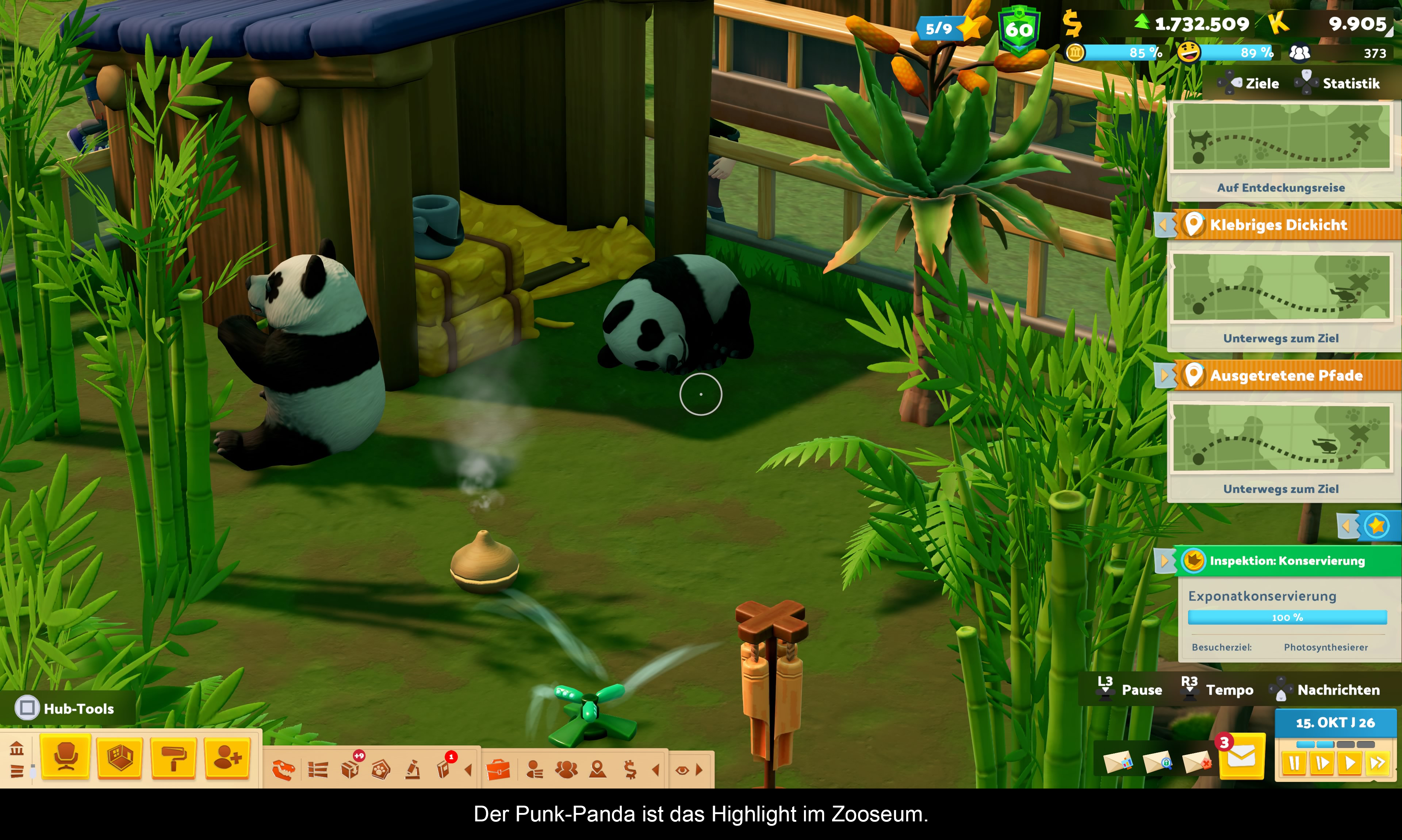 Die Zootiere stellen eine Weiterentwicklung des bisherigen Konzepts dar. Der Mikromanagement-Aspekt wurde deutlich verstärkt, da die Gehege mehr Pflege benötigen. Hier empfiehlt es sich, mit der Zonen-Funktion zu arbeiten und Mitarbeiter bewusst auszuwählen. Leider bleibt die UI dabei die größte Schwäche, wie bereits im Hauptspiel. Wenn diese Hürde genommen ist, warten 34 eigenständig animierte und fantasievolle Tiere.