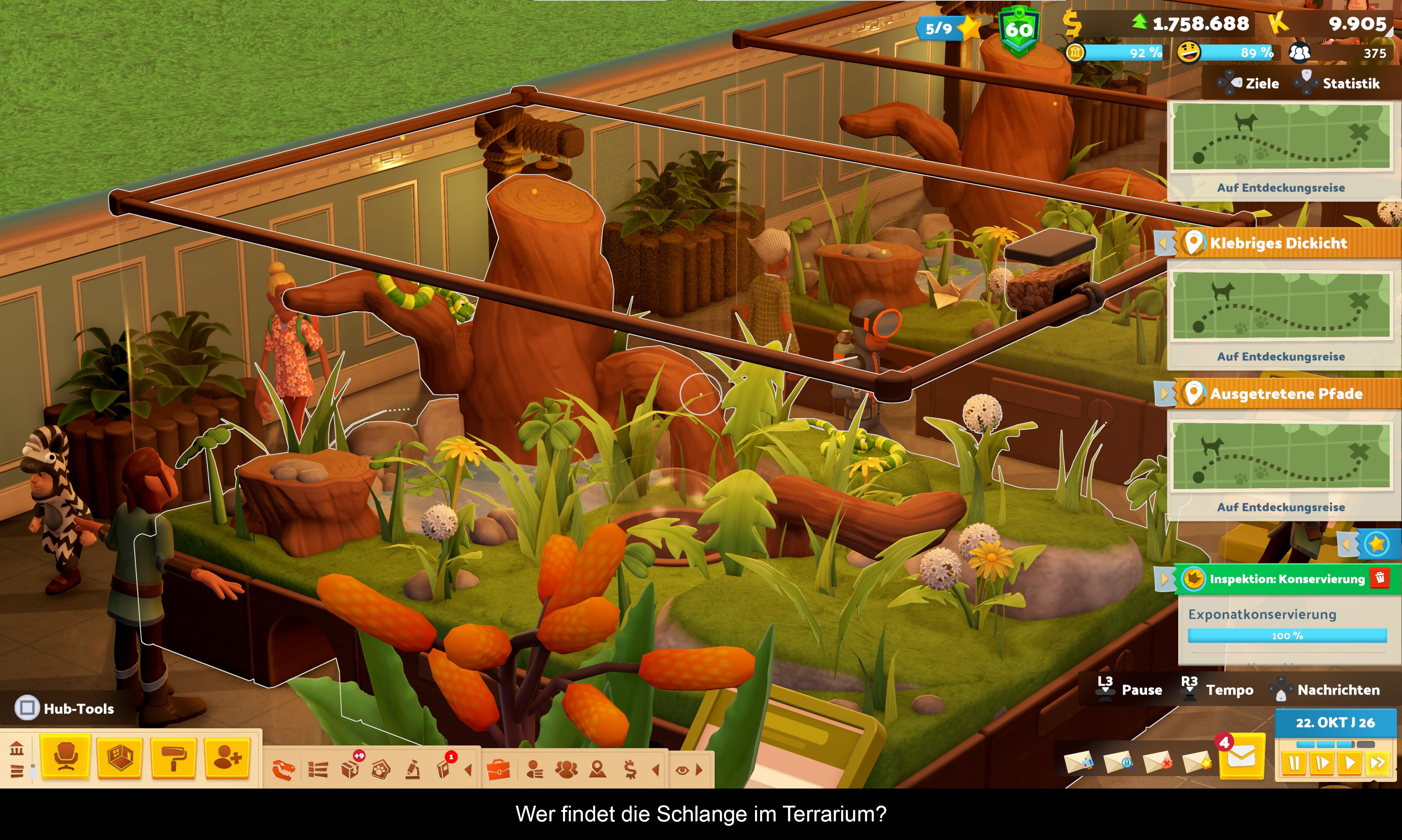 Für 10,99 Euro kann man sein Museum um einen Zoo erweitern. Das mag sich etwas komisch anhören, aber im Hauptspiel hat man bereits Ähnliches mit Fischen und Geistern gemacht. Hier wird dieses Gameplay weiter ausgebaut und verfeinert. Man sollte jedoch keine Zoo-Simulation erwarten.