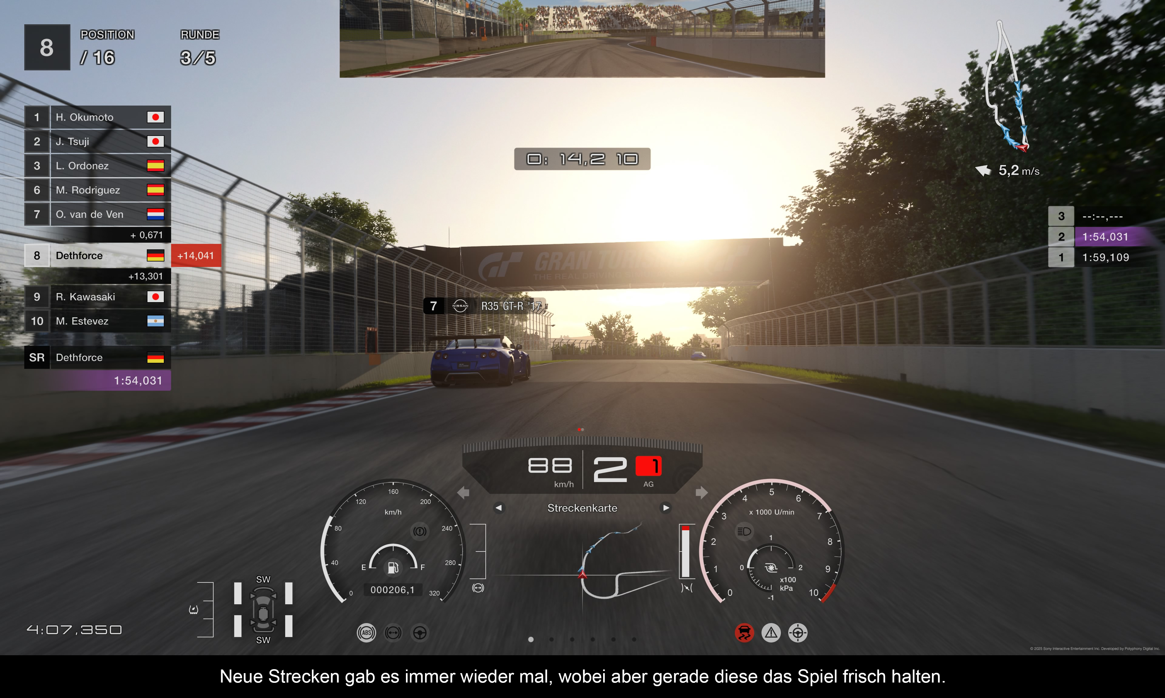 Weitere Höhepunkte der Updates waren sicherlich das im Juli überarbeitete Physikmodell, das vor allem bei Offroad-Rennen deutlicher zum Tragen kommt, sowie das PS5-Pro-Update, das Ende November 2024 mit einiger Verspätung veröffentlicht wurde. Letzteres war anfangs nicht gerade das Gelbe vom Ei. Zuvor konnte man das Spiel ohne spezifische PS5-Pro-Anpassungen im Quality-Modus laufen lassen und erhielt im Gegensatz zur normalen PS5 eine stabile 60-fps-Framerate. Das eigentliche PS5-Pro-Update (Version 1.54) spendierte dem Spiel dagegen noch ein paar zusätzliche Optionen. Neben einem optionalen 8K-Modus gab es in dem Update auch verbesserte Rendertechniken bei Nutzung einer VR-Brille. Darüber hinaus wurde Ray-Tracing in verschiedenen Modi implementiert, wobei die Bildqualität bei solchen Features bis heute kriselig und verwaschen ist. Viel wichtiger war jedoch der Support für die PlayStation Spectral Super Resolution (PSSR)-Technik. Damit läuft das Spiel im Prinzip mit einer wesentlich niedrigeren Auflösung, die durch die PSSR-Technik hochskaliert wird, sodass am Ende ein wesentlich feiner aufgelöstes Bild entsteht, ohne dass es zu Einbußen bei der Framerate kommt. Zumindest in der Theorie, denn praktisch war die Integration unter aller Sau: Das Ergebnis sah in den ersten Monaten grobschlächtig und niedrig aufgelöst aus, es gab viele Artefakte und regelrechtes Kantenflimmern bei feinen Linien, die vor allem diagonal verliefen (wie Stromleitungen). Allerdings hat sich das mit der Zeit wesentlich gebessert, sodass das Spiel mittlerweile besser aussieht als zum Start. Alles ist hochaufgelöst, viele Details sind jetzt auch in der Ferne perfekt erkennbar und die Cockpits/Autos sehen noch einmal ein Stück besser aus. Artefakte gibt es aber immer noch.