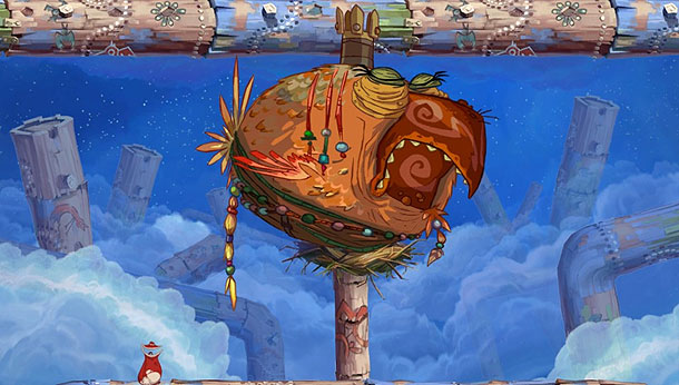 Rayman Origins ist das erste Spiel, welches auf der neu entwickelten UbiArt Framework läuft. Diese Spiel Engine wurde extra für Zeichner und Künstler entwickelt um ihre Animationen 1:1 zu übernehmen. Jede Figur, jeder Hintergrund, jedes sonstige Element wurde in Rayman Origins per Handgezeichnet und das Ergebnis ist mehr als beeindruckend. Rayman und Co verfügen über unzähliger Animationen, die an jede erdenkliche Gelegenheit angepasst sind. Hintergründe sind farbenprächtig und sprühen nur vor liebevollen Details welche ein Künstler versteckt hat. Eigentlich schade, dass man sich relativ schnell durch die Levels bewegt, denn man sollte die Zeit nutzen um sich diese einzigartigen Hintergründe und Animationen zu bestaunen. Für alle die sich die nehmen wollen um alles genauer zu erforschen, hat UbiSoft ein Zoom Feature eingebaut. Doch das Beste zum Schluss, das Spiel läuft derart flüssig, dass man schon fast das Gefühl bekommt man spiele einen Trickfilm. Das einzige Manko ist, dass bei der Fülle an Zeichnungen und Hintergründe das Spiel des Öfteren hinauskommen muss, damit man seine Sprünge genauer planen kann. Dabei kann es vorkommen, dass die Spielfigur schwer zu erkennen ist. Diese Szenen sind glücklicherweise eine Seltenheit und stellen kein großes Problem dar. Auch bei der Musik setzt Ancel auf einen alten Bekannten mit dem er schon bei Beyond Good & Evil zusammen gearbeitet hat, Christophe Héral. Sein Soundtrack passt perfekt zur kunterbunten Rayman Welt und unterstreicht nochmal den liebevollen Trickfilm Flair.