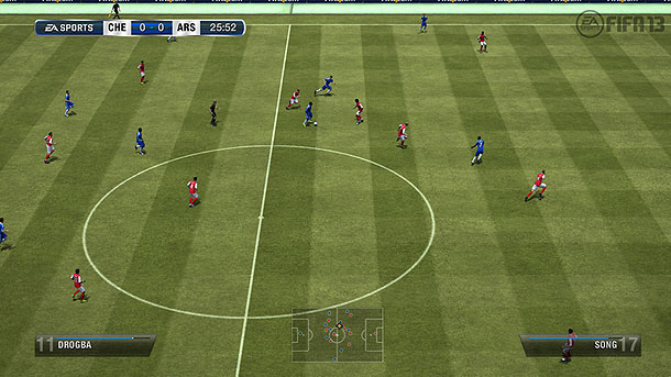 FIFA 12 bot mit der Impact Engine die wohl größte Neuerung, die man seit Jahren in einem FIFA Spiel vorfand. Von daher war es im Grunde klar, dass man in diesem Jahr kleinere Brötchen backen musste und das merkt man auch. Denn am Gameplay selbst hat sich recht wenig getan, was aber nicht schlecht sein muss, denn die gute Basis war ja schließlich da. Trotzdem hat man sich die Mühe gemacht und mit der sogenannten First Touch Control eine weitere Neuerung ins Spiel eingeführt. Die bewirkt, dass die Spieler nicht mehr jeden Ball perfekt annehmen, sondern durchaus mal einen Ball verstolpern, ihn zu weit vorlegen oder ähnliches. Das sorgt für mehr Spannung in den Partien und auch etwas Realismus, denn wenn man eine Flanke scharf, wie einen Schuss in den Strafraum bringt, ist es eher unwahrscheinlich, dass ein Stürmer diesen perfekt unter Kontrolle bringt. Leider führt dies teilweise auch zu wirklich verrückten und absolut unberechenbaren Szenen im Strafraum und für manche wohl sogar etwas zu oft. Mit etwas Feinschliff dürfte dies aber für noch realistischere Duelle sorgen, denn immerhin hat man auch die Impact Engine in diesem Jahr überarbeitet, sodass es viel seltener zu den zahlreichen Fehlern aus FIFA 12 kommt, wo Spieler übers ganze Feld geflogen sind oder sich verfangen haben. Leider war es das aber auch schon an großartigen Neuerungen im Gameplay. Natürlich gibt es hier und da noch Kleinigkeiten, die angepasst wurden, aber wer FIFA 12 kennt, dürfte auch recht schnell mit FIFA 13 klarkommen. Trotzdem gibt es noch Grund zu meckern, denn beispielsweise sind die Lupfer bzw. hohen Pässe in den Lauf viel zu stark in diesem Jahr. Sobald man mit Unterstützer-Steuerung spielt, kommt jeder hohe Pass nahezu perfekt an und das auch über mehrere dutzend Meter. Zudem ist die manuelle Steuerung nicht wirklich manuell, zumindest wirkt es so. Denn die Pässe mit der X-Taste wirken manchmal nicht ganz frei und man wird das Gefühl nicht los, dass das Spiel einem die Richtung für den Pass vorgibt, damit er doch nicht in die Hose geht. Hier sollte man definitiv die Freiheiten ein wenig weiter auslegen. Auch sehr nervig sind die automatischen Spielerwechsel bei Pässen oder hohen Bällen, denn viel zu oft wird der falsche ausgewählt und man versucht hilflos den Spieler zu wechseln, um die Situation noch zu retten. Das Gleiche passiert manchmal auch in der Vorwärtsbewegung beim Passen, wenn zwei Spieler für das Annehmen in Frage kämen und man meist den falschen zugeteilt bekommt.