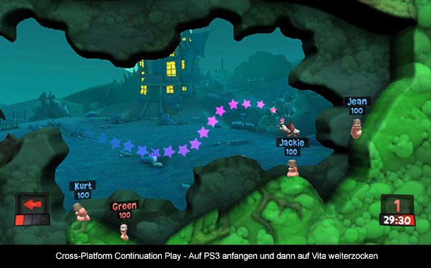 Rein grafisch wird man leider etwas enttäuscht. Während die Konsolenfassung noch sehr klar und scharf war, überrascht die PS Vita Version mit matschigen und schwammigen Texturen, die an gute alte PSP Zeiten erinnern. Immerhin läuft das Spiel bis auf wenige Ausnahmen relativ ruckelfrei. Nichtsdestotrotz sollte man Worms nicht unbedingt als Vorzeigespiel für die grafische Power der PlayStation VITA benutzen.