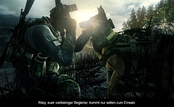 Was jedoch auffällig ist, ist die Länge eurer Reise. In mehr als ein Dutzend Missionen treibt es den Spieler über den kompletten amerikanischen Kontinent. Areale, wie zum Beispiel ein komplett zerstörtes Hollywood, ein Aufenthalt im All oder eine gigantische Ölplattform sorgen für jede Menge Abwechslung im Soldaten-Alltag. Und während man in den meisten Missionen vornehmlich gegen menschliche Gegner antritt, gibt es sogar Szenarien, wo selbst hungrige Haie oder Wölfe eurem Ziel im Wege stehen. Außerdem verdient Infinity Ward ein großes Lob für die Variation im Gameplay. Statt stundenlanger Ballerei (die sich jedoch immer noch sehr gut anfühlt) gibt es immer wieder neue Aufgaben, die ein wenig Abwechslung in den steifen Shooter Alltag bringen. Die größte Neuerung ist dabei sicherlich euer getreuer Hund. Ausgestattet mit einer Videokamera hat der Spieler die Möglichkeit den Zweibeiner quasi fernzusteuern und auf feindliche Soldaten zu hetzen. Überraschenderweise musste ich jedoch feststellen, dass die Abschnitte mit dem Hund relativ überschaubar sind. Man darf gespannt sein, ob Infinity Ward auch in Zukunft weiterhin auf den angriffslustigen Vierbeiner setzen wird.