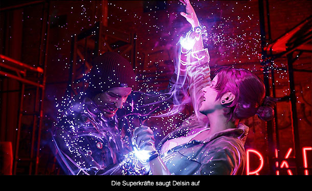 Spielerisch dürften sich Kenner der Vorgänger bei „inFAMOUS: Second Son“ sofort wieder wohl fühlen. Obwohl die Elektrokräfte den Rauchkräften weichen mussten, gibt es spielerisch große Ähnlichkeiten. So kann man wieder Geschosse abfeuern, im Nahkampf mit einer Kette kämpfen oder auch Rauchbomben und ähnliches ablegen. Die Besonderheit bei „inFAMOUS: Second Son“ ist jedoch, dass es nicht nur eine Kraft gibt, sondern gleich mehrere. Die unterscheiden sich dann im Kampf, wie in der Fortbewegung. Beispielsweise kann man mit den Rauchkräften problemlos durch Gitter hindurch gleiten oder mittels Luftschächten die Gebäude in Sekundenbruchteilen erklimmen. Mit einer anderen Kraft, wie der aus den Trailern bekannten Neonkraft kann man dagegen diese Dinge nicht tun, aber unglaublich schnell rennen und das sogar Häuserwände herauf und Gegner mittels gezielten Schüssen festketten. Mit den weiteren Kräften sind ähnliche Dinge möglich und die Kunst liegt darin alle Kräfte passend zu kombinieren. Gewechselt wird zwischen den Kräften übrigens indem man die passende Grundlage, also z.B. Rauch oder Neon, aufsaugt, um sich zu stärken. Eine Combo aus einem Rauchschuss gefolgt von einem Neonball funktioniert also nicht. Man merkt dabei aber auch recht schnell, dass man zur Fortbewegung die Kräfte nutzen soll. Denn wenn man versucht, wie in den Vorgängern an den Häusern hoch zu klettern, wird merken, dass dies alles andere als geschmeidig von statten geht. Man bleibt gerne mal hängen, kommt nicht weiter, obwohl dort ganz klar ein Vorsprung ist oder wird wegen einem blöden Fehler sogar runtergeworfen. Alles etwas ärgerlich, aber dank der Kräfte ist dies kein großes Problem. Ansonsten gibt es die gewohnt offene Welt, die man völlig frei erkunden darf und in der man neben den Hauptmissionen noch einige Nebenaufgaben findet. Beispielsweise darf man die Stadt mit seinen Graffitis besprühen, gefangene Conduits befreien oder auch nach Scherben Ausschau halten mit denen man seine Kräfte verbessern kann. Wieder mit von der Partie sind natürlich die moralischen Entscheidungen. In manchen Missionen wird man vor die Wahl gestellt sich für das Gute oder Böse zu entscheiden, was dann den weiteren Spielverlauf beeinflusst und auch die eigenen Kräfte. Denn gute bzw. böse Spieler erhalten leicht andere Kräfte. Dabei muss man auch sonst aufpassen, denn wer gut sein möchte, muss Zivilisten beschützen und aus Kämpfen heraushalten, während man als böser Spieler auf niemanden Acht geben muss. Um aber alles gesehen zu haben, wird man die zwei Spieldurchgänge für Gut und Böse benötigen und so dürfte man auf seine 25-30 Stunden Spielzeit kommen, wenn man alle Nebenaufgaben erledigen möchte.