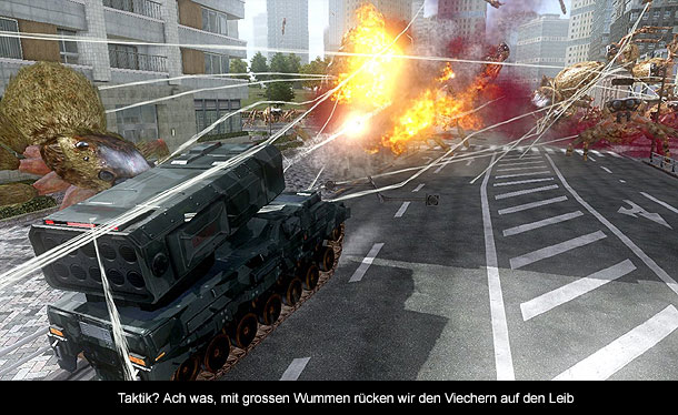 Ein Käfer allein bringt noch keinen Soldaten des EDF ins Schwitzen. Doch wie die Forschungsabteilung berichtet, kommt es bei Massenerscheinungen der Insektoiden zu einem seltsamen Phänomen. Soldaten bewegen sich langsamer und alles scheint in Zeit Lupe abzulaufen. Auf dem Schlachtfeld trägt dieser seltsame Effekt den Namen „Framerate Einbrüche“! Überlebende sprechen wirre Sätze wie „unter 30 FPS!“. Bei Nachforschungen stellte sich heraus, dass dieser Effekt im Zusammenhang mit den neu errichteten vollzerstörbaren Bauten steht. Generäle des EDF verfluchen jetzt schon die Bauingenieure welche nach der letzten Invasion der Außerirdischen diese Gebäude ersetzt haben. Weiteres stellte sich bei den Nachforschungen heraus, dass die Außerirdischen gewisse Landstriche besonders zu schätzen wissen. Vororte, Stadtzentrum, die Küste und unterirdische Tunnelsysteme scheinen sie zu lieben. Bei diesen Orten ist mit einem erhöhten Feindaufkommen zu rechnen. Selten das sie von ihrem Muster abweichen und andere Landstriche angreifen. Auch scheint es kein größerer Augenscheinlicher Unterschied bei den Feinden zu geben. Jedes Insekt gleicht dem anderen. Unsere Forschungsabteilung rätselt noch immer wie sich der Feind Unterschiede feststellen kann. Mit diesen Fragen sollen sich die Wissenschaftler befassen. Wir hier beim Militär setzen aber auf Farben. Jeder Rekrut der EDF kann ein individuelles Farbliches Erscheinungsbild wählen. Ausrüstung ist Standardware, hier gibt es keine persönliche Note.