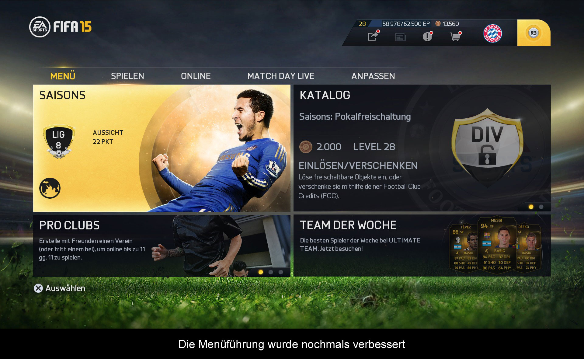 Bereits im Hauptmenü stellt man fest, dass sich in Sachen Oberfläche nur wenig verändert hat. Und auch die einzelnen Modi erinnern sehr an das letztjährige Spiel. So hat man es wieder mal nur mit den üblichen Verdächtigen zu tun: Be A Pro, Managermodus, Saisonmodus, Turniere und Clubs. Zwar gibt es hier und da einige optische Verbesserungen, aber was die Grundstruktur angeht, erwartet dem Fußballfan ein Paket mit nur wenigen Überraschungen. Eine Ausnahme bildet jedoch das interaktive Sammelkartenspiel Ultimate-Team, welches mit einigen sinnvollen Neuerungen ausgestattet wurde. Dazu gehört unter anderem eine bessere Menüführung und die Möglichkeit mit Hilfe von Taktik-Sheets zukünftige Traummannschaften zu erstellen. Es ist fast erstaunlich, wie sich der Ultimate Team Modus im Laufe der Jahre von einem simplen DLC-Add On zum absoluten Kern des Spiels entwickelt hat. Und in Anbetracht der Tatsache, dass EA mit Sicherheit gute Verdienste mit den beliebten FIFA Coins macht, ist es wenig überraschend, dass man insbesondere in diesem Modus die meisten Verbesserungen wiederfindet. Aber auch Spieler, die kein Geld in das Spiel investieren möchten, werden ganz auf ihre Kosten kommen. Auch wenn es natürlich etwas länger dauert, bis man die wirklich großen Spieler in seinen Reihen hat. An dieser Stelle kommt jedoch das neue Leih-System ins Spiel, welches einem erlaubt seine FUT-Mannschaft für ein paar Spiele mit einigen besonderen Top-Kickern auszustatten (zum Bespiel Bale oder Vidal). Dies hilft vor allem zu Beginn dabei etwas mehr Kreativität in sein Team zu bringen. Was den Ultimate Team Modus angeht hat EA einen weiteren Schritt in die richtige Richtung gemacht hat. Man darf gespannt sein, wie sie diesen Modus auch in Zukunft noch weiterhin verbessern werden. Ein weiteres Lob verdient der solide Onlinemodus, der meist frei von Lag und Unterbrechungen ist. Es sei denn die FIFA Server sind mal wieder offline, was vor allem in den ersten 1-2 Wochen relativ häufig vorgekommen ist. In Anbetracht der Tatsache, dass man es aber mit einem der größten Veröffentlichungen des Jahres zu tun hat, ist es etwas enttäuschend, dass EA dieses Problem zum wiederholten Mal nicht verhindern konnte. Über allem steht am Ende jedoch die Enttäuschung, dass es wieder mal kaum Innovationen und Überraschungen gibt. Stattdessen ist es offensichtlich, dass EA in Sachen Content und Modi ganz klar dem Zitat des englischen Starkickers Gary Lineker gefolgt ist: Never change a winning team / Ändere niemals ein Siegerteam.